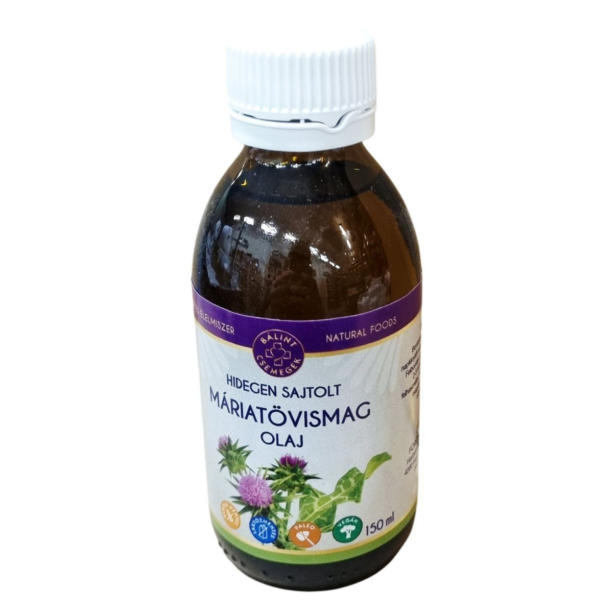 A Balint Csemegék máriatövismag olaj természetes eredetű élelmiszer, hidegen sajtolt technológiával készül, amely megőrizheti az olaj értékes tulajdonságait. A termék 150 ml-es kiszerelésben érhető el. Különféle speciális étrendekbe, például paleo és vegán étrendekbe is beilleszthető, és egyaránt mentes a gluténtől és a laktóztól. A máriatövismag olaj összetétele kizárólag máritövismag olajat tartalmaz, amely gazdag telített, egyszeresen és többszörösen telítetlen zsírsavakban, beleértve az olajsavat és az omega-6, valamint omega-3 zsírsavakat is.