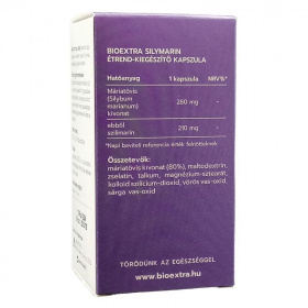 Hatóanyaga, a szilimarin védi a májat a toxikus anyagokkal szemben, lassítja a májkárosodást és gyorsítja a szövetek regenerációját. Alkalmazható gyógyszeres terápia kiegészítésére, támogatja a méregtelenítő kúra eredményességét. A Bioextra Silymarin kapszula a Májbetegekért Alapítvány ajánlásával rendelkezik és a lehető legmagasabb szilimarin tartalmú étrend-kiegészítő készítmény. Összetevők: máriatövis kivonat, maltodextrin, zselatin, térfogatnövelő (kukoricakeményítő), poliszorbát 80, csomósodás gátló (megnézium-sztearát), színezék (vörös vas-oxid, titán-dioxid). Hatóanyag a napi adagban: 280 mg máriatövis kivonat, ebből 210 mg szilimarin/ 1 kapszula. Notifikációs szám: 7781/2010.