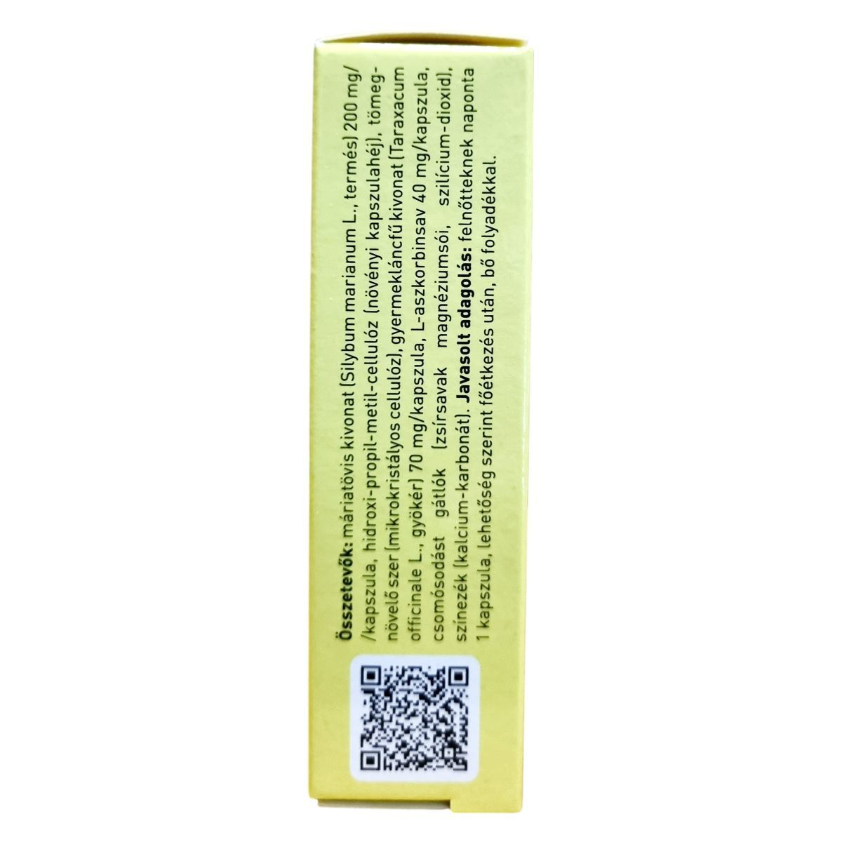 máriatövis kivonat (Silybum marianum L., termés) 200 mg/kapszula, hidroxipropil-metil-cellulóz (növényi kapszulahéj), tömegnövelő szer (mikrokristályos cellulóz), gyermekláncfű kivonat (Taraxacum officinale L., gyökér) 70 mg/kapszula, L-aszkorbinsav 40 mg/kapszula, csomósodást gátlók (zsírsavak, magnézium-sói, szilícium-dioxid), színezék (kalcium-karbonát).