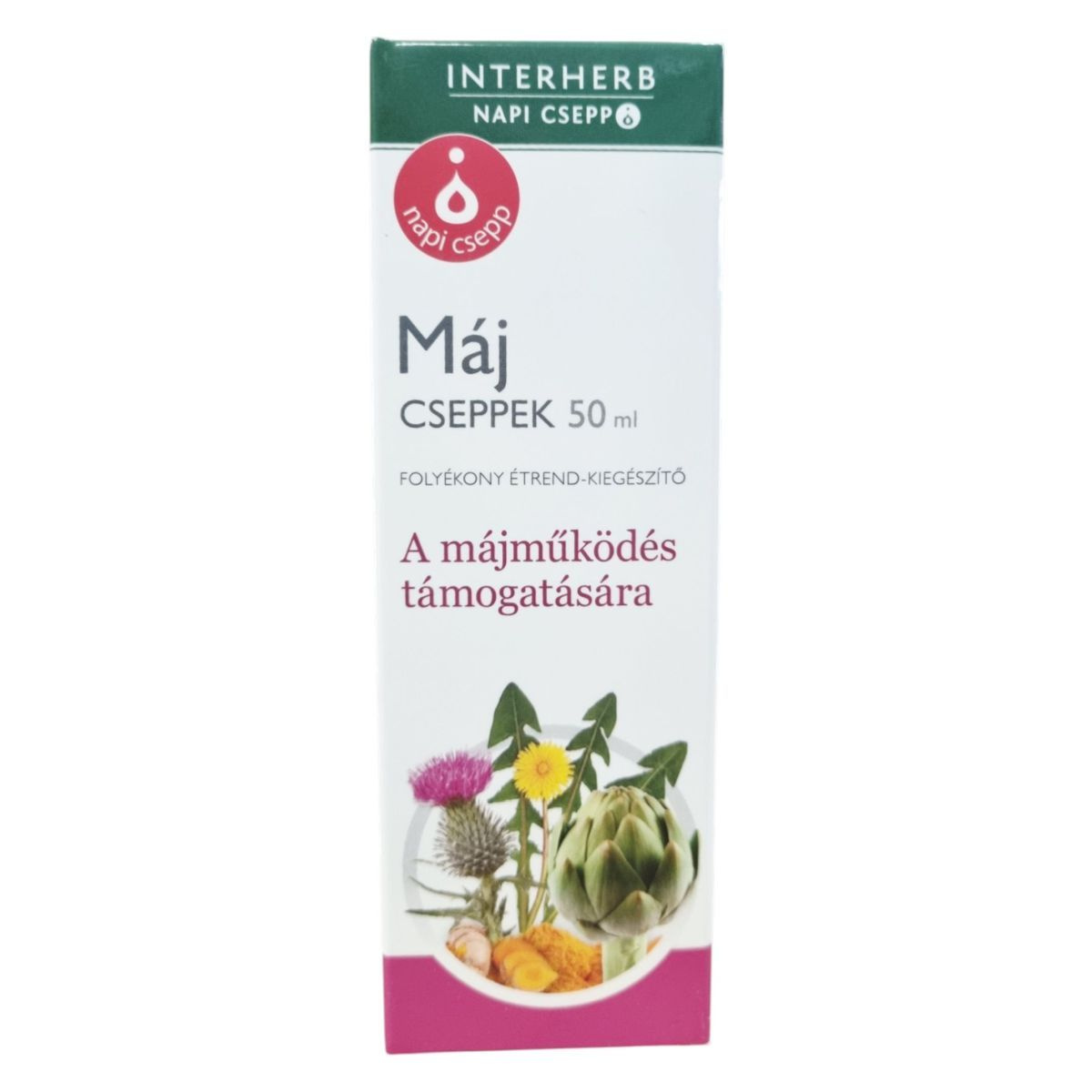 Az INTERHERB NAPI CSEPP Máj CSEPPEK egy vizes-alkoholos gyógynövénykivonat, amely a májműködés támogatására készült. A termék máriatövis, kurkuma, gyermekláncfű és articsóka kivonatot tartalmaz, amelyek hozzájárulhatnak a normál májműködés fenntartásához és az emésztés támogatásához. Az alkoholtartalom 36 V/V %, ezért alkohollal kölcsönhatásba lépő gyógyszerekkel nem szedhető, és nem ajánlott alkoholbetegek számára. A termék fogyasztása várandósság és szoptatás alatt, valamint gyermekeknek nem javasolt. A készítmény nem helyettesíti a kiegyensúlyozott vegyes étrendet és az egészséges életmódot.
