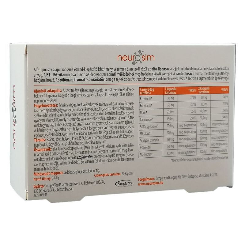 Neurosim kapszula Alfa-liponsav alapú étrend-kiegészítő készítmény.