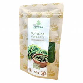 A BioMenü Spirulina algatabletta 100% bio spirulina algát tartalmaz, amely támogathatja az egészséges életmódot. A termék bio, raw és vegán étrendi irányzatoknak is megfelelhet.