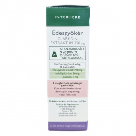 Az INTERHERB Édesgyökér Glabridin Extraktum 250 mg kapszula fogyókúrás étrend kiegészítésére szolgálhat. Az édesgyökér kivonat hozzájárulhat a gyomor és nyombél nyálkahártya épségének megőrzéséhez és a zsírok anyagcseréjének támogatásához.