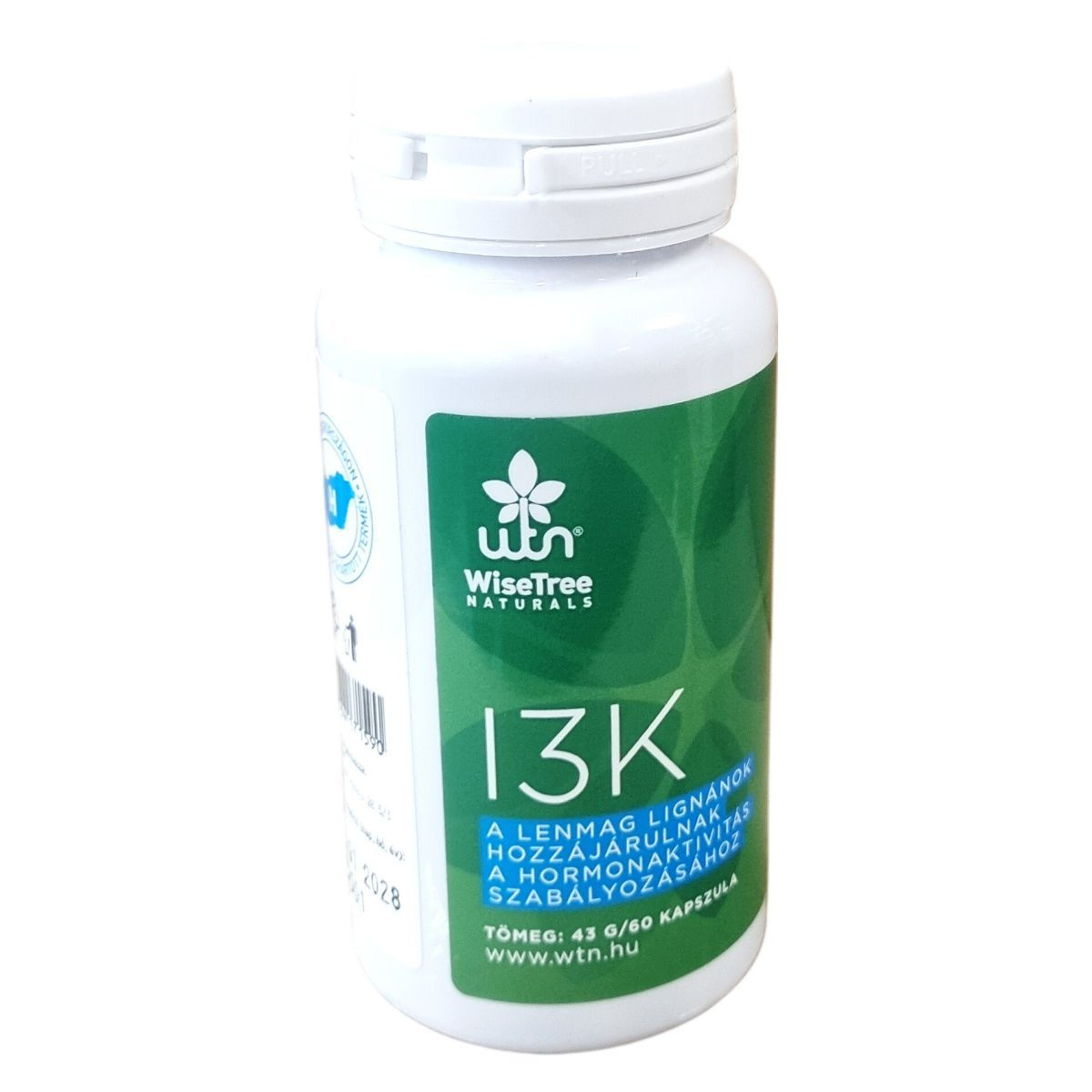 A wtn WiseTree 13K egy Magyarországon fejlesztett és gyártott étrend-kiegészítő, amely különböző növényi kivonatokat tartalmaz kapszula formájában. A formula fejeskáposzta, rizskorpa, zellerlevél, brokkoli mag, lenmag, japánakácvirág és zöld tea kivonatokat ötvöz. Ezek az összetevők hozzájárulhatnak a hormonaktivitás szabályozásához és kiegészítő támogatást nyújthatnak különféle élettani folyamatokhoz. A termék kapszulánként 43 grammot tesz ki, 60 kapszula található egy csomagban. A fogyasztásnál ajánlott az adagolást napi egy kapszulára korlátozni, lehetőség szerint étkezések között, vagy érzékeny emésztőrendszer esetén étkezés közben.