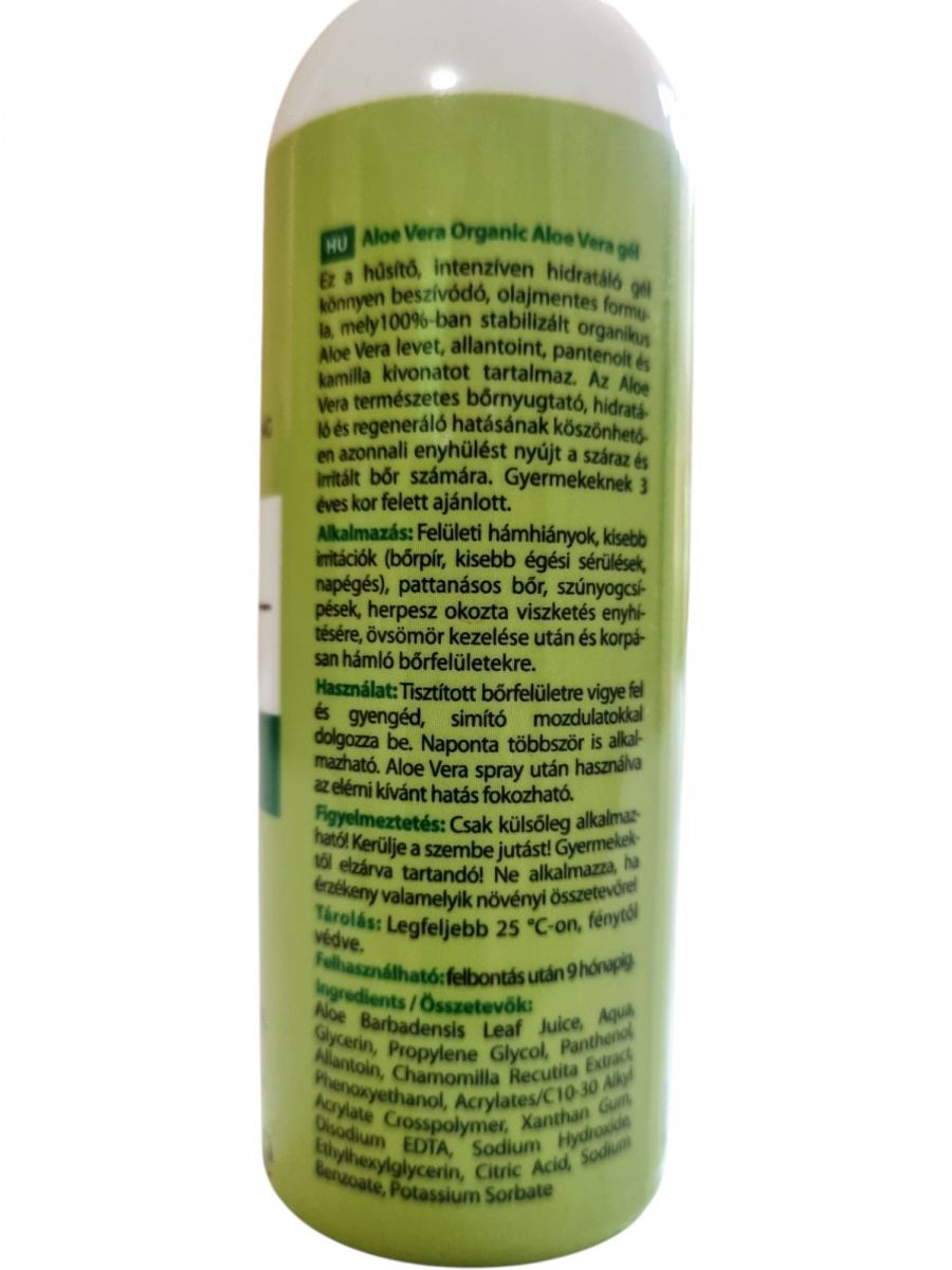 Ez a hűsítő, intenzíven hidratáló gél könnyen beszívódó, olajmentes formula, amely 100%-ban stabilizált organikus Aloe Vera levet, allantoint, panthenolt és kamilla kivonatot tartalmaz.