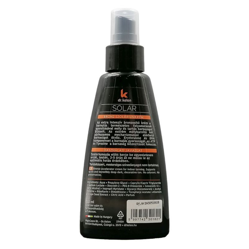 A termék két különböző mechanizmussal kialakuló barnaságot ötvöz. Önbarnító komponense a felvitelt követő 3-5 óra múlva jelentkező barnaságot garantálja, míg a Thiyrosine pigmentaktivátor összetevői a szoláriumozáskor elérhető barna szín erősségét, mélységét, természetes kinézetét fokozzák. Az eredmény bronzosan csillogó barna bőr.Gyorsan felszívódik. Arcra, testre egyaránt használható.