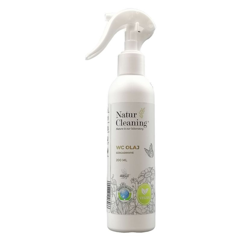 A WC olaj premium egy természetes, foszfát-, klór- és parabénmentes, pálmaolaj mentes, vegán, biológiailag jól lebomló természetes összetevőkből készült WC higiéniai készítmény. Egyszerű, gyors és higiénikus használatával a WC csészéket, piszoárokat tisztíthatjuk és hosszan tisztán tarthatjuk, hiszen speciális összetevőinek köszönhetően a kezelt felületen vékony filmréteget képez, így megakadályozza az újabb szennyeződések és vízkő lerakódását. Egy-egy használat (kb. 2-5 spricc) akár 48 órás védelmet és friss illatot biztosít, így használata gazdaságosabb bármely más ismert megoldásnál.