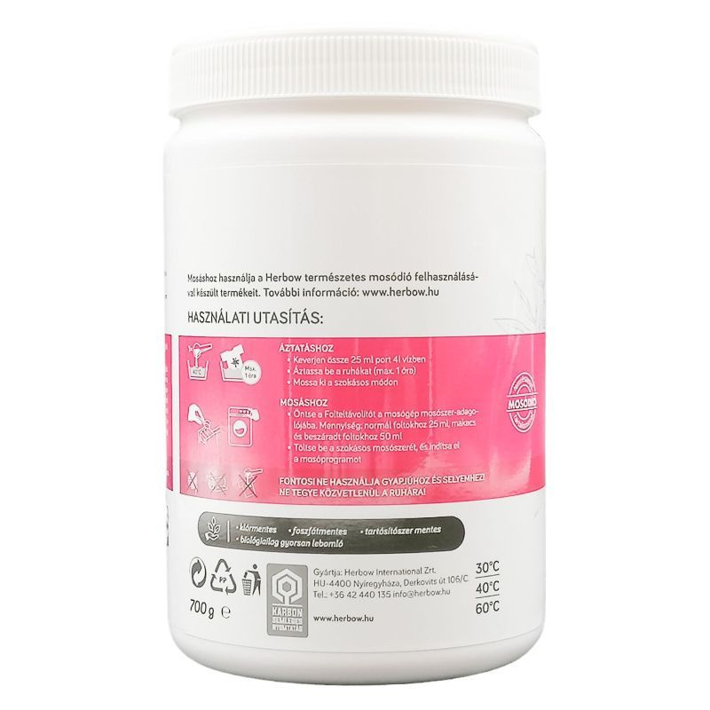 Az erősebben szennyezett textíliákhoz és a foltok eltávolítására ajánljuk. Bőr- és környezetkímélő összetételének és aktív oxigénes koncentrált hatóanyag tartalmának köszönhetően nagyobb mennyiségben adagolva sem károsítja a textíliát, védi a színeket a fakulástól. Nem tartalmaz optikai fehérítőt. 30-40-60 Celsius-fokon gépi és kézi mosáshoz is felhasználható.