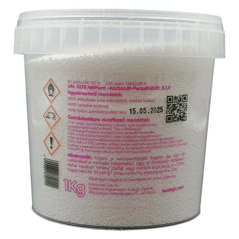Használatát színes és fehér ruhák esetében egyaránt ajánljuk: áztatáshoz, folteltávolításhoz, fehérítéshez, erős foltok előkezeléséhez és áztatásához kiválóan alkalmazható.Színes ruhánál is alkalmazható. A színeket nem fakítja! Használata: használható áztatáshoz (függöny, fehérnemű): egy evőkanállal az áztató vízbe. Makacs foltnál: vízzel masszát készítve közvetlenül tegyünk aa foltra majd kb. 40-50 perc hatásidő után a ruhát tegyük a mosógépbe a többi közé és mossuk ki. Mosópor mellé adagolva a mosógépbe 1-2 evőkanálnyit. 40 fokon is hatékony. Penész ellen sokan a hipót vetik be, vagy drágábban beszereznek valamilyen penészirtó szert, ami valójában szintén elsősorban hipóból készül. Ehelyett használjunk olcsó és klórmentes nátrium perkarbonátot! 2 dl meleg vízhez keverjünk 2 evőkanál folttisztító sót! Spricnis üvegből fújjuk rá a falfelületre, és hagyjuk hatni, majd többször ismételjük meg. A nátrium perkarbonát nem csak a penészspórákat írtja ki, de még fehéríteni is fogja a foltot! Összetevő: 100% nátrium-perkabonát.