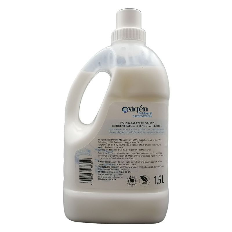 Természetes növényi összetevőket tartalmaz, ezért kíméli a bőrünket és a környezetünket. Hatására a ruha lágy tapintású és kellemes illatú lesz. 1,5 literes kiszerelés. Hipoallergén. Klór-, foszfát-, parabén- és színezékmentes. Állatkísérlet-mentes. Vegán. Biológiailag jól lebomlik. Ez a termék az Európai Uniós környezetvédelmi előírások figyelembevételével készült. Magyar termék.