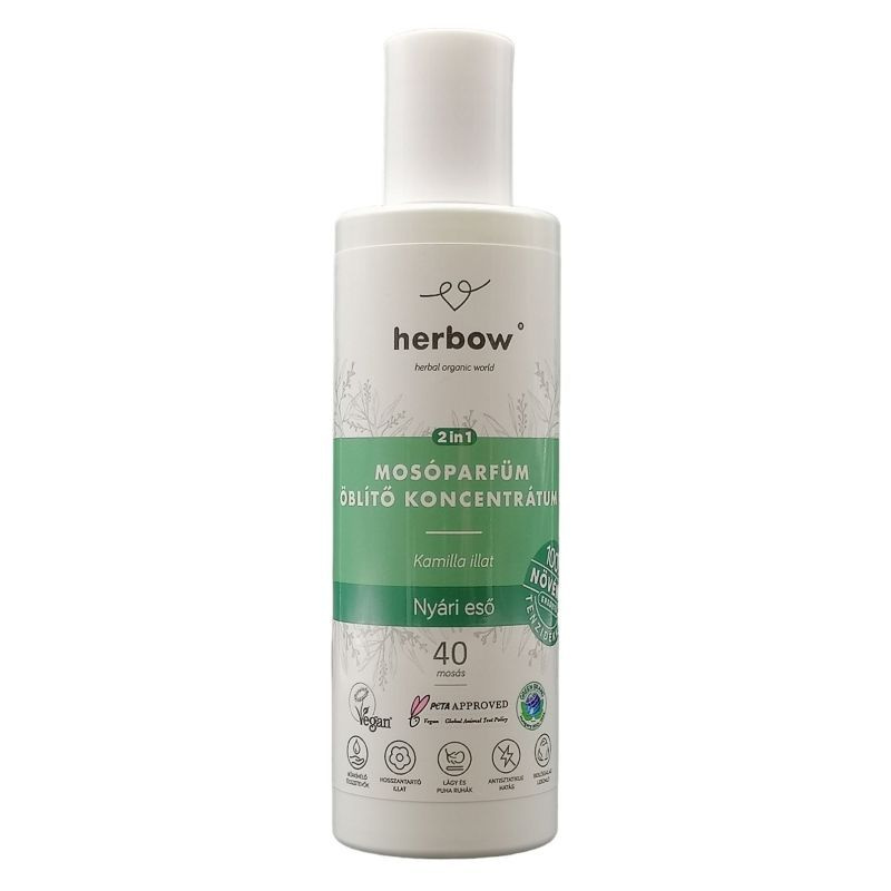 Növényi bázisú textilöblítő-szuperkoncentrátum a frissítő nyári záporok áztatta kamilla mezők nyarat idéző hangulatának üde, mámoros illatával.