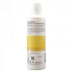 Növényi bázisú textilöblítő-szuperkoncentrátum a gyümölcsös és virágos jegyek összhangja, a mangó és a frissen kaszált széna illatának harmonikus egyensúlyával.