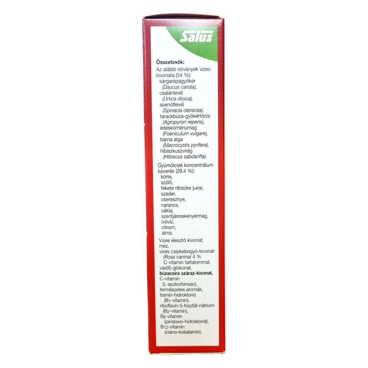 A Salus Floradix Kräuterblut szirup természetes eredetű, vas-glükonátból származó szerves vasat, valamint B- és C-vitaminokat tartalmaz. A növényi kivonatok és gyümölcslevek gondosan válogatott kombinációja segítheti a vas hasznosulását és a vérképzés folyamatát. Rendszeres fogyasztása hozzájárulhat a vitalitás, a koncentráció és az energiaszint megőrzéséhez. Az alkohol-, tartósítószer- és színezékmentes összetételnek köszönhetően kíméletes a szervezethez, kellemes gyümölcsös ízével könnyen fogyasztható, így gyermekek és felnőttek számára egyaránt ideális választás a vas pótlására és a fáradtság csökkentésére.