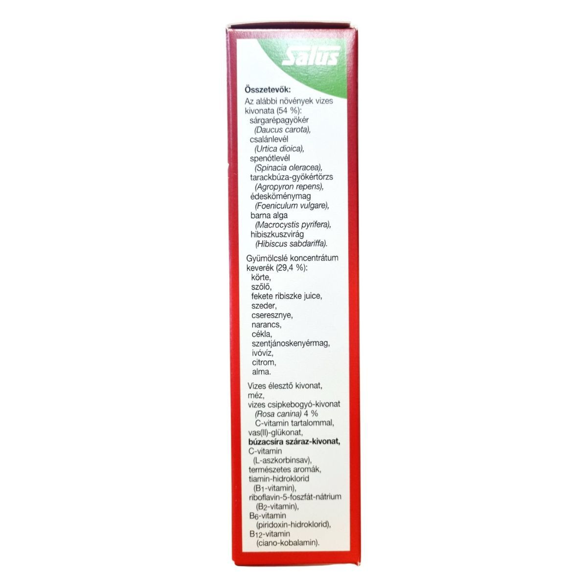 A Salus Floradix Kräuterblut szirup válogatott növényi és gyümölcs-kivonatokon alapuló, vasat és többféle B-vitamint, valamint C-vitamint tartalmazó étrend-kiegészítő, amely segíthet a fáradtság és kimerültség csökkentésében, és hozzájárulhat a normál vérképzéshez. Kellemes gyümölcsös ízének és könnyen fogyasztható szirup formájának köszönhetően ideális nők, várandós és szoptató anyák, serdülők és idősebbek számára egyaránt. A termék tartósítószer-, színezék-, alkohol- és laktózmentes, vegetáriánus étrendbe is beilleszthető.