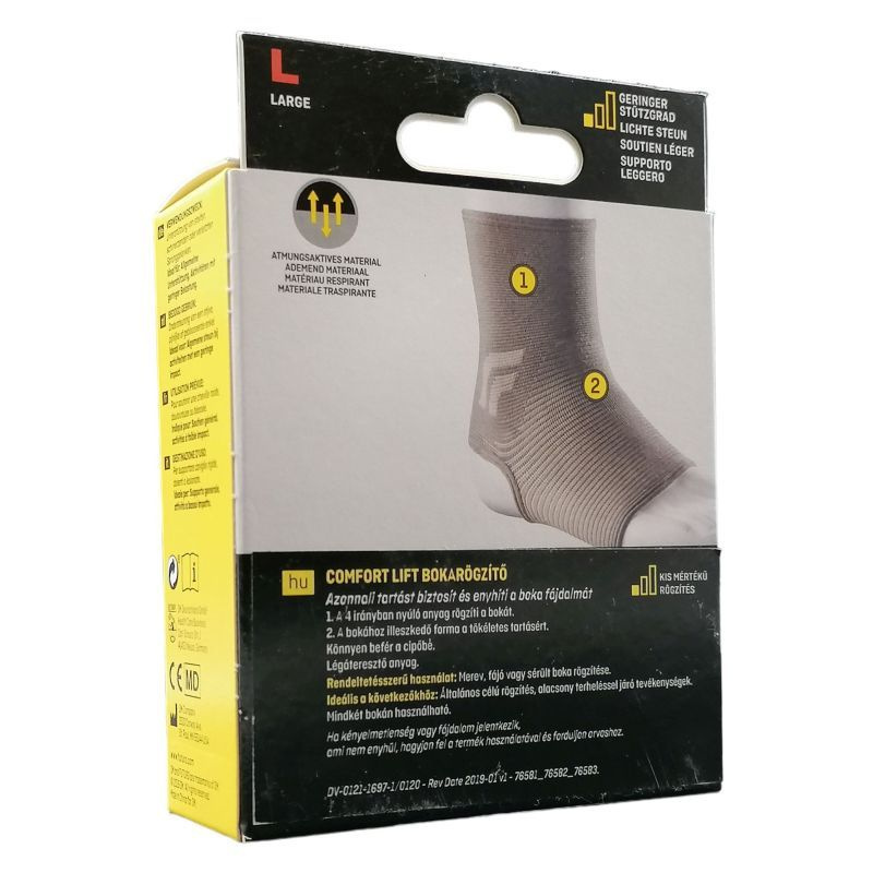 L (38,0-44,5 cm). Kényelmesen húzza fel, vegye fel a cipőjét és már mehet is! Viselje egész nap, vagy amikor a leginkább szüksége van rá. Speciális jellemzők: Puha kötés és sarok nyílásnál a kényelemért, diszkrét, ruha alatt viselhető. Alkalmazható: bokarándulás, -húzódás, ízületi gyulladás, bokaduzzanat esetén. Terméktípus: Zárt. Termékjellemzők és termékelőnyök: Letisztult, egyszerű design követi a boka formáját, ami optimális illeszkedést és ízületi védelmet nyújt. Légáteresztő, duplán rugalmas, erős kötött anyag az optimális kényelemért. A kényelmes panelek csökkentik a gyűrődést. Egyszerűen és diszkréten illeszkedik a cipőbe. Jobb és bal bokán egyaránt alkalmazható.