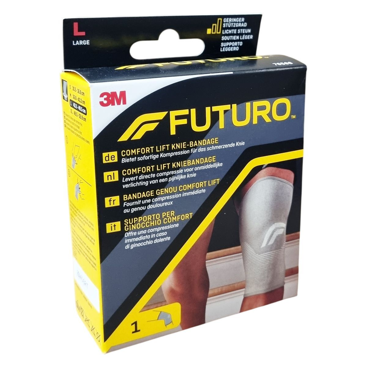 A FUTURO™ Comfort Lift térdrögzítő négyirányú nyúlású, lélegző anyagból készült, amely optimálisan tartja a térdet és biztosítja a kényelmes illeszkedést. A kontúrozott kialakítás segíti a megfelelő pozíció megtartását, miközben biztosítja a légáteresztést. Kismértékű támogatást nyújt, így túlzott merevség nélkül segít a fájó térd azonnali kompresszióban és támogatásban. A termék kézmosási javaslatokat tartalmaz: kézzel 30°C-on mosható, nem fehéríthető, nem szárítógépezhető, nem vasalható és nem vegytisztítható. A méretek S-től XL-ig terjednek, és mindkét térdre alkalmasak, a jobb és bal térden egyaránt használhatóak. A termék gyártása Kínában történik 3M részére, a 3M és FUTURO védjegyek a 3M tulajdonát képezik.