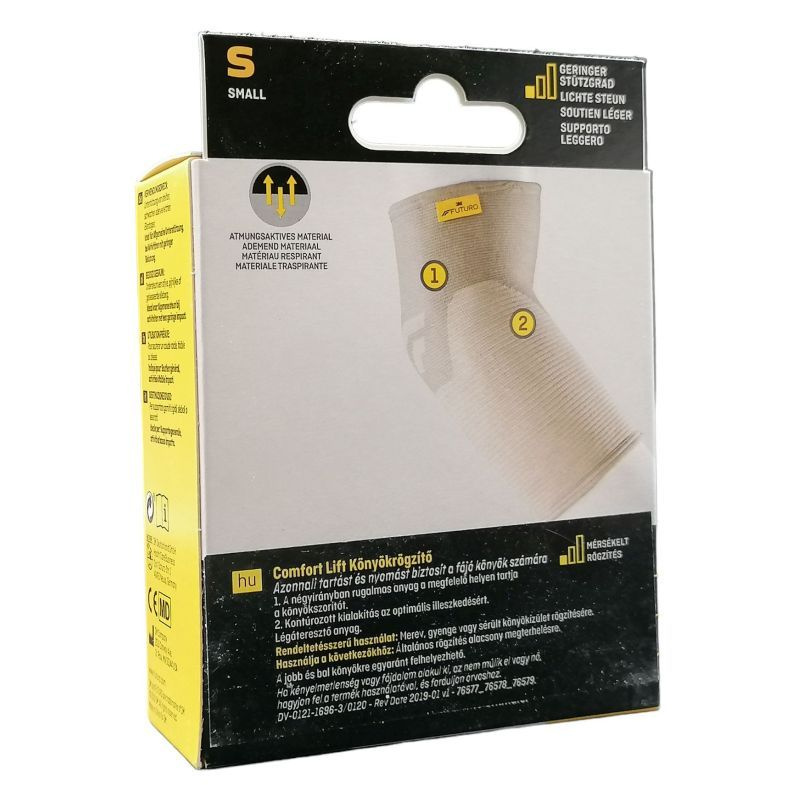 S (23,0-25,5 cm). Csak egyszerűen húzza fel a könyökrögzítőt mindennapi tevékenységei előtt. Foglalkozzon azokkal a dolgokkal, amiket szeret! Speciális jellemzők: Duplán rugalmas, erős kötött anyag az optimális illeszkedésért és kényelemért. Alkalmazható: rándulás, húzódás, ízületi gyulladás, duzzanat, ínhüvelygyulladás esetén. Terméktípus: Zárt. Termékjellemzők és termékelőnyök: Tartást és védelmet nyújt, tehermentesít. A sima, egyszerű design követi a könyök formáját és ruha alatt sem látszik. Légáteresztő, duplán rugalmas anyaga puha és könnyű viseletet biztosít egész nap. Egész napos, kényelmes viseletre készült a puha, könnyű, légáteresztő anyagának köszönhetően. Egyszerű le- és felvenni. Jobb és bal könyökön egyaránt alkalmazható.