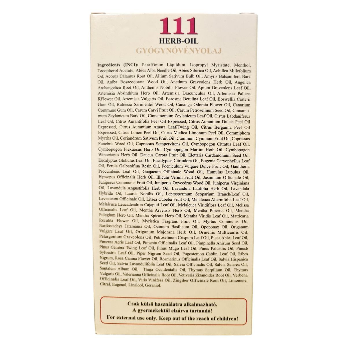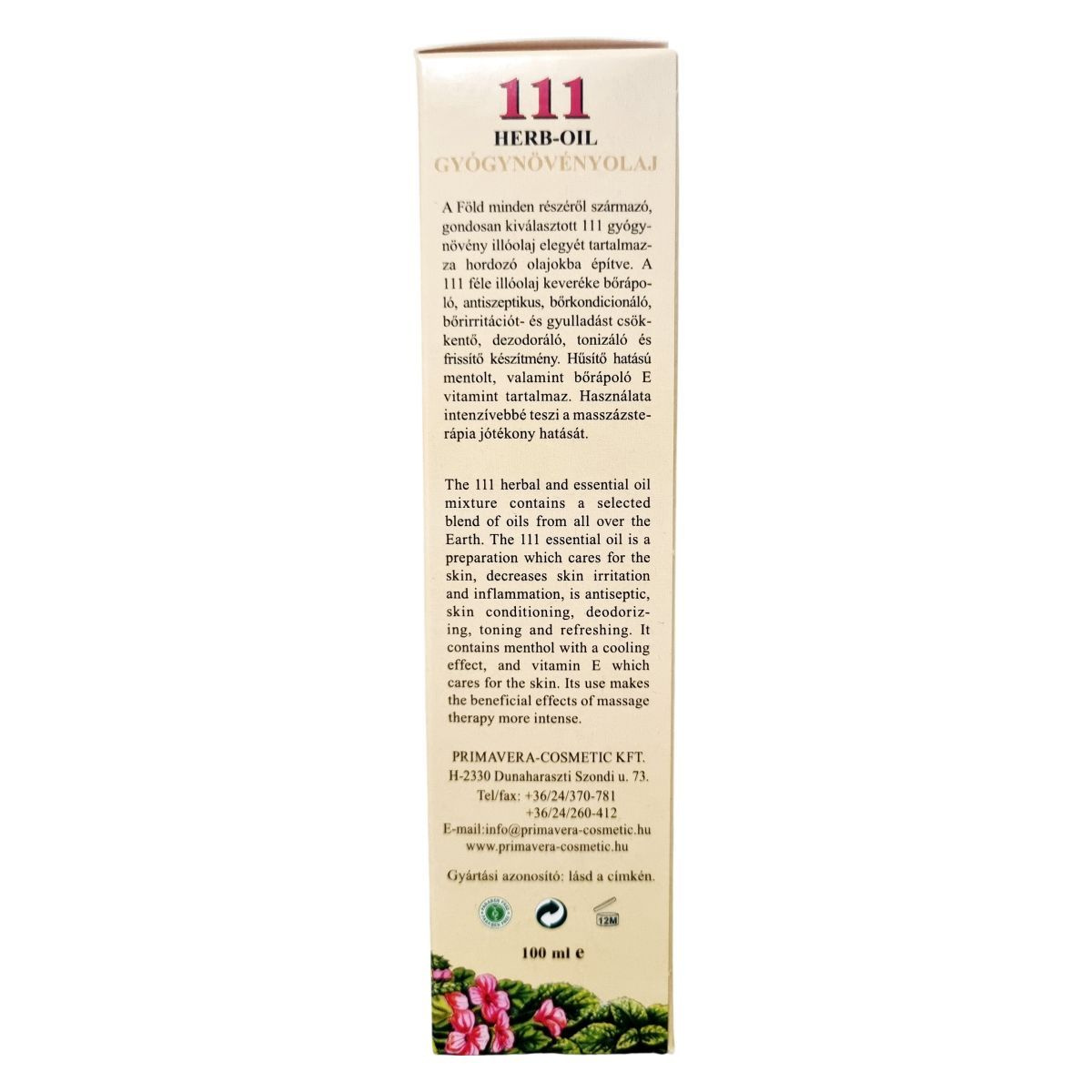 A 111 féle gyógynövényt és illóolajat tartalmazó keverék bőrápoló, antiszeptikus, bőrkondicionáló, gyulladást és irritációt csökkentő, dezodoráló, tonizáló és frissítő hatású. A termék hűsítő mentolt és bőrápoló E-vitamint is tartalmaz, melyek fokozzák a masszázsterápia jótékony hatásait. Használatával frissességet és kellemes érzést biztosít a bőr számára, valamint enyhíti a rovarcsípések és kisebb bőrsérülések okozta kellemetlenségeket. A termék többféle felhasználási módot kínál, mint például fürdőhöz adva, masszázshoz, dezodoráláshoz, sportoláshoz, rovarcsípés kezelésére, valamint légfrissítésre otthon.