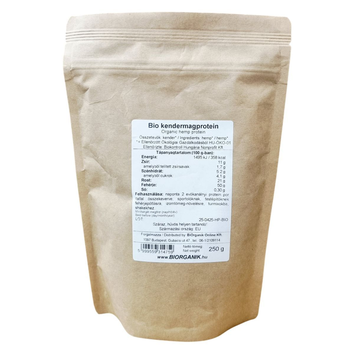 A termék ellenőrzött ökológiai gazdálkodásból származó kendermagból készül, amely az Európai Unió területéről származik. A kendermagprotein elsősorban sportolók és testépítők részére lehet ajánlott, akik fehérjepótlásra és izomtömeg-növelésre keresnek természetes alapú megoldást. A termék vegán és bio minősítésű, így alkalmas különféle étrendi követelményekhez. Nettó tömege 250 gramm, és egyedi gyártási azonosítóval kerül forgalomba.