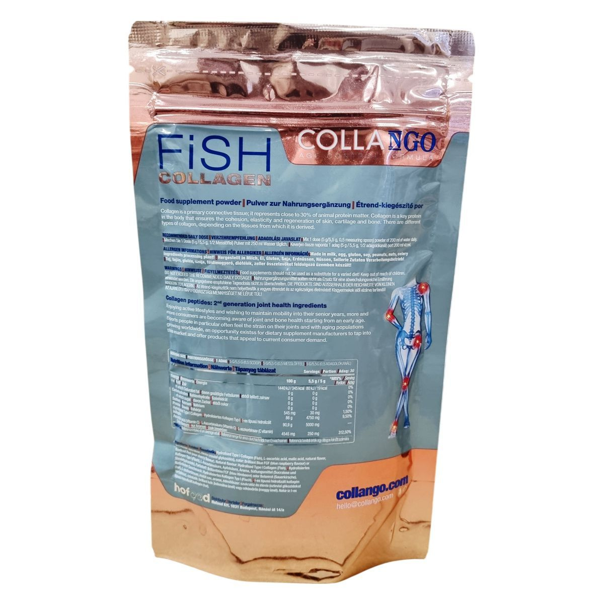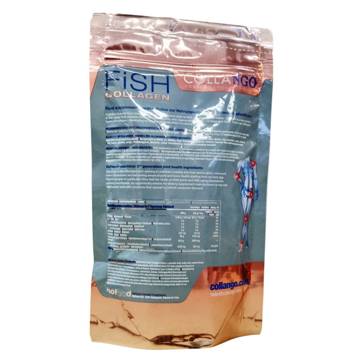 A Collango kollagén termékpalettája hal kollagénnel bővült: I-es típusú hidrolizált Naticol BPMG hal kollagén, 5.000 mg (5 g) kollagén adagonként.