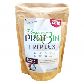 A Vegan PROT3IN TRIPLEX egyedülálló barnarizs-, borsó- és kendermagfehérje keveréket tartalmaz, amely segíthet a napi fehérjebevitel növelésében. Kókuszízű, és steviol-glikozidokkal édesített.