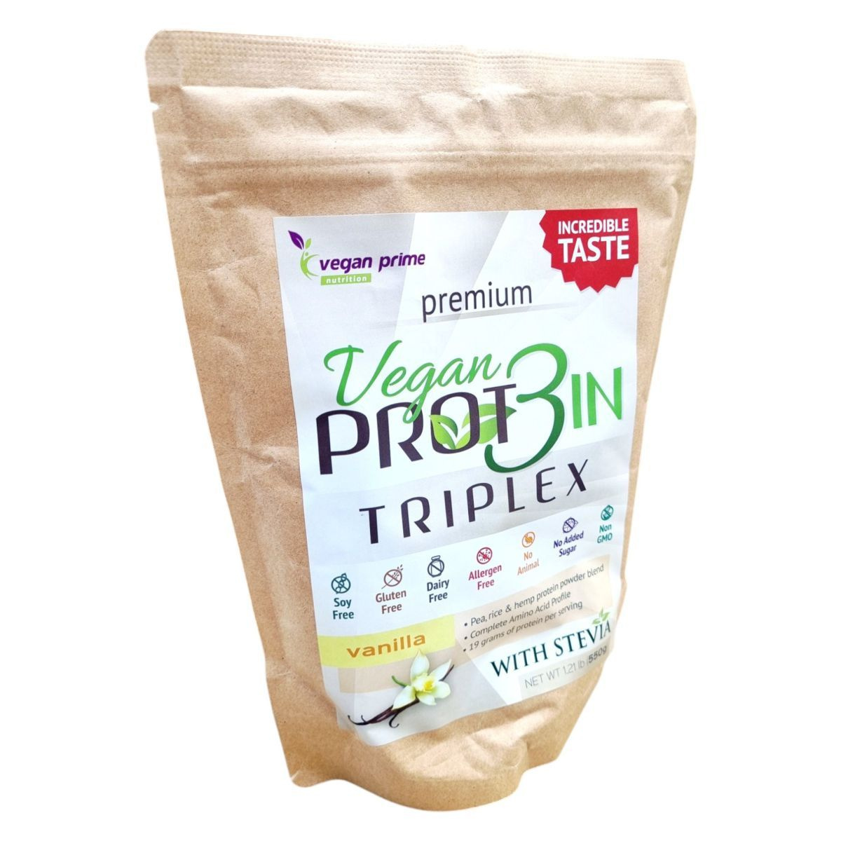 A Vegan PROT3IN TRIPLEX egy vegán vaníliaízű fehérje alapú italpor, amely borsó-, rizs- és kendermagfehérje kombinációját tartalmazza. Könnyen emészthető és változatosan felhasználható, hozzájárulhat a napi fehérjebevitelhez.