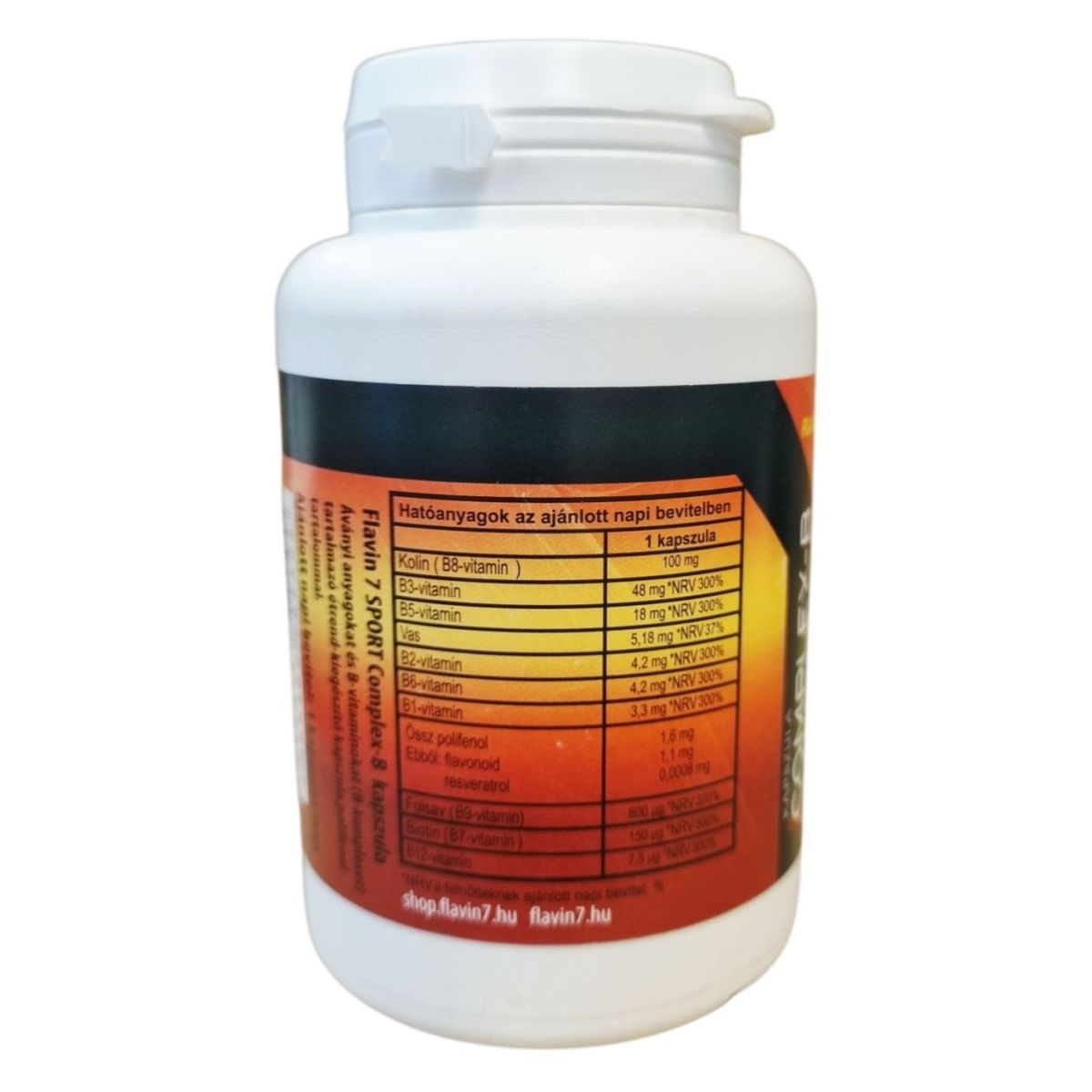 A FLAVIN7 SPORT COMPLEX-B kapszula bioflavonoid komplexet és B-vitaminokat tartalmaz, amelyek hozzájárulhatnak az általános jóléthez és támogathatják a szervezet vitaminellátását.