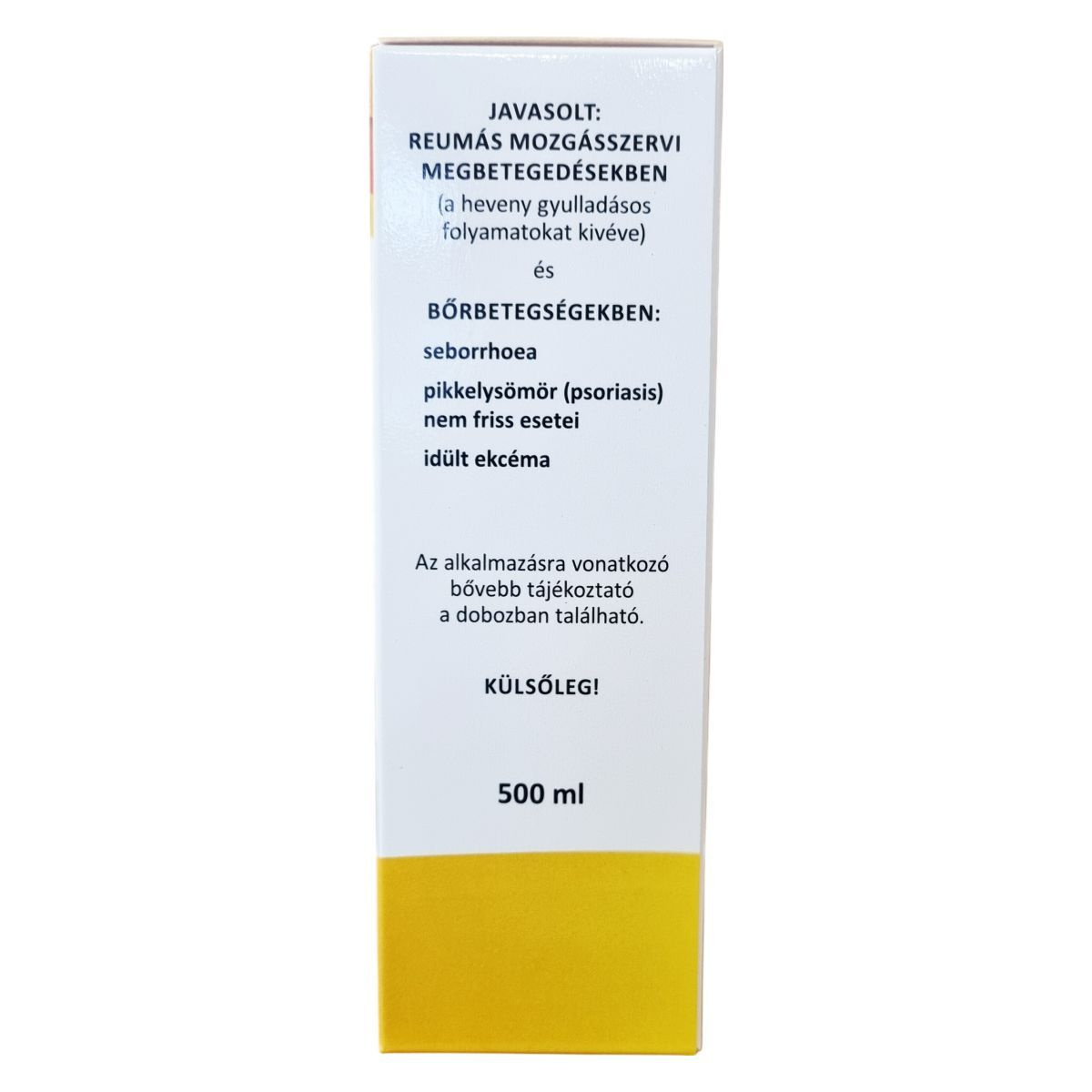 Reumás mozgásszervi megbetegedésekben (a heveny gyulladásos folyamatokat kivéve) és bőrbetegségekben, mint seborrhoea, pikkelysömör (psoriasis) nem friss esetei és idült ekcéma. A flakonból 100 ml-t kell kimérni 60 liter 34-36 °C-os fürdővízhez, a fürdés időtartama 20-30 perc. Csak külsőleg használható!