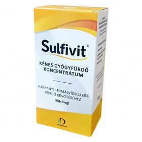 A Sulfivit® készítmény a harkányi termálvíz jellegű fürdők elkészítéséhez készült koncentrátum, amely hatóanyagai révén mozgásszervi és bőrgyógyászati betegségek esetén fejti ki hatását. Összetevőinek jótékony hatását szakirodalmi adatok és évszázados tapasztalatok igazolják. Az alkalmazás részletes tájékoztatója a dobozban található. A termék kizárólag gyógyfürdő készítésére használható, tömény formában sem a bőrre, sem a szembe nem kerülhet.