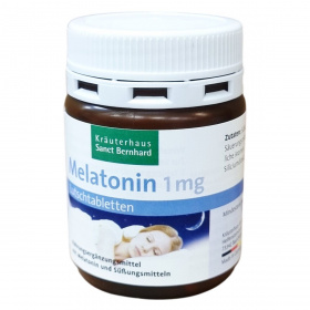 Szopogató tabletta melatoninnal és édesítőszerekkel. 1 tabletta 1 mg melatonint tartalmaz. NRV%: nincs megállapított napi beviteli referenciaérték. Kiszerelés: 120 db tabletta. Németországban gyártva.