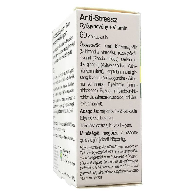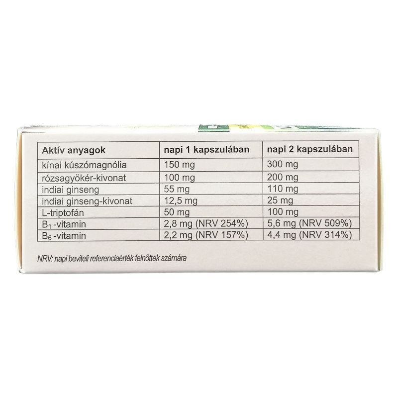 A stresszel szembeni ellenállóképesség fokozásához fejlesztett étrend-kiegészítő kapszula gyógynövényekkel és vitaminokkal a problémamentes hétköznapokért.