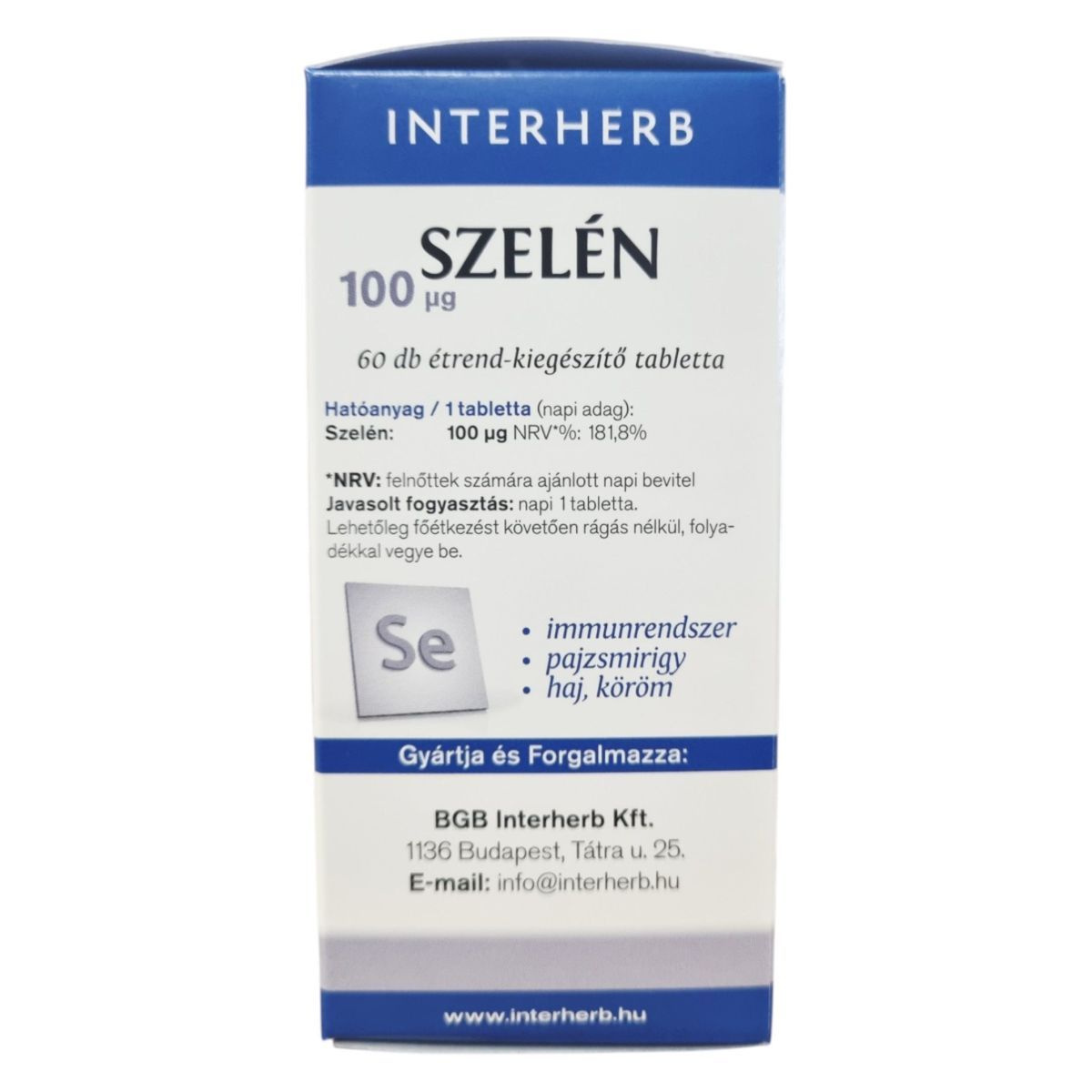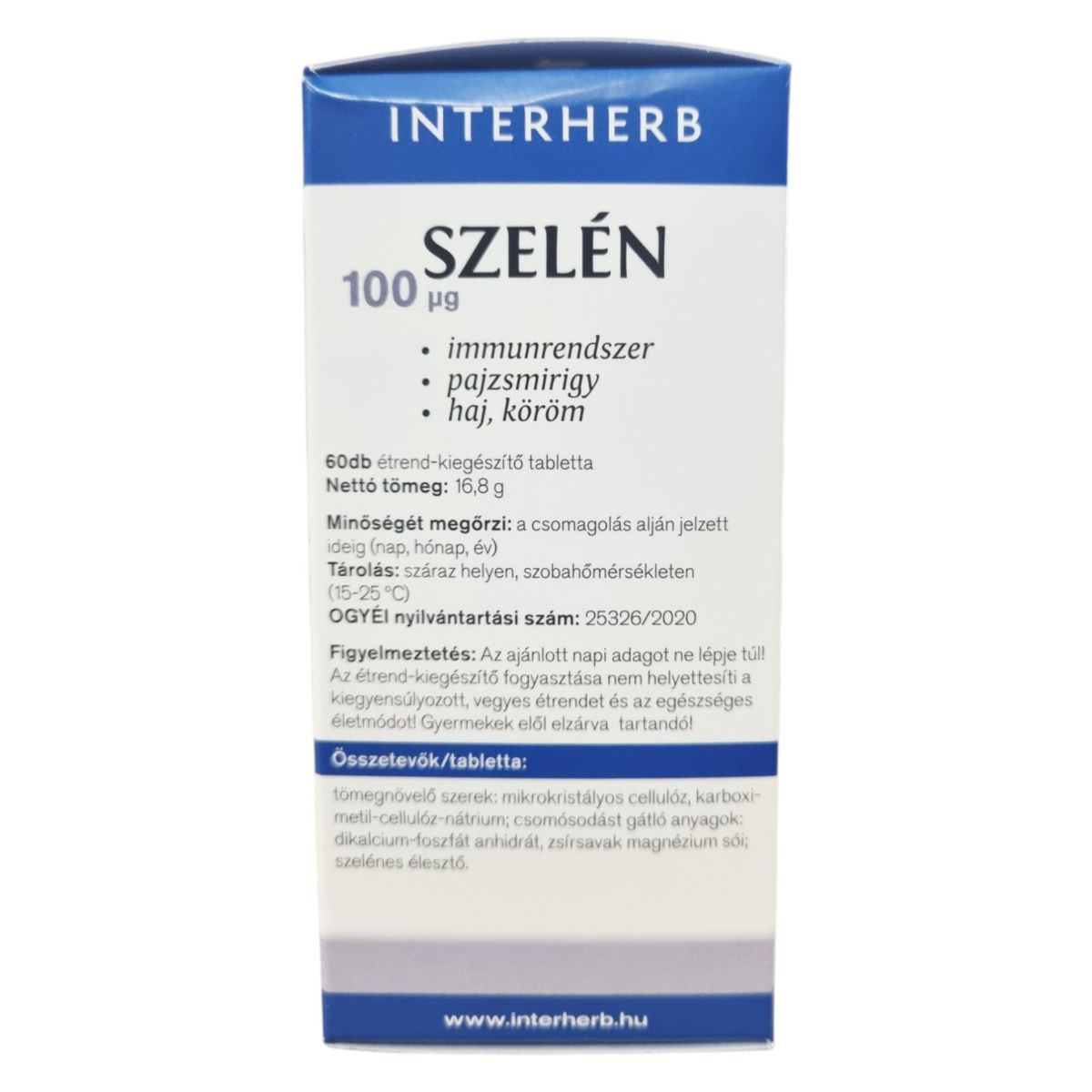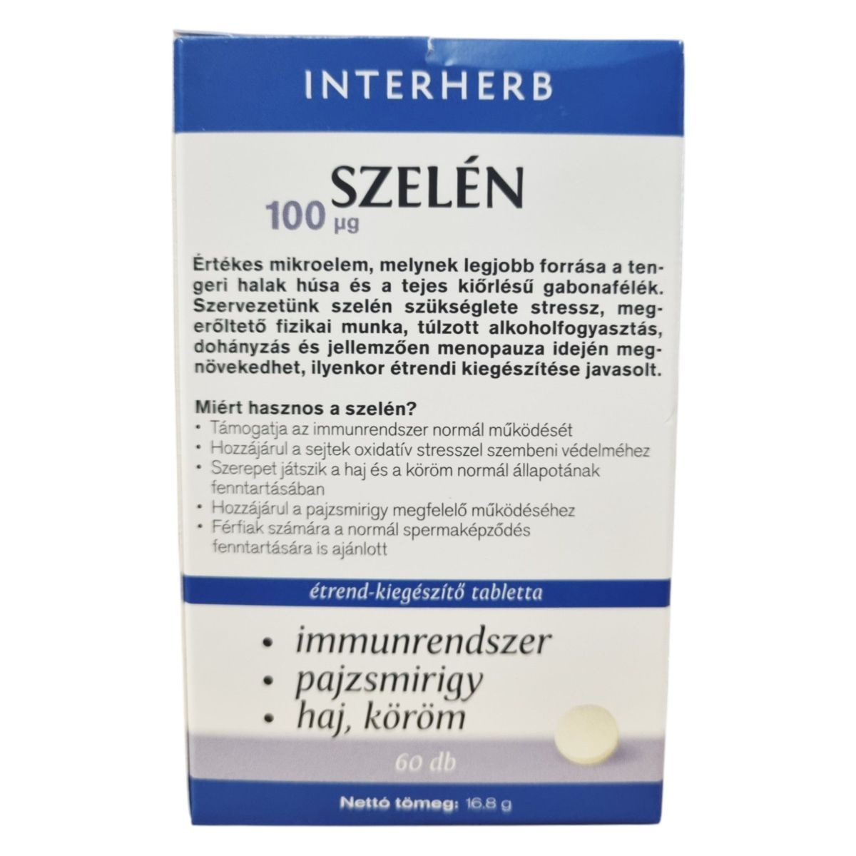 Az INTERHERB SZELÉN 100 µg tabletta szerves szelén vegyületet tartalmaz, amely hozzájárulhat az immunrendszer és a pajzsmirigy normál működéséhez, valamint a haj és a köröm egészségének fenntartásához.