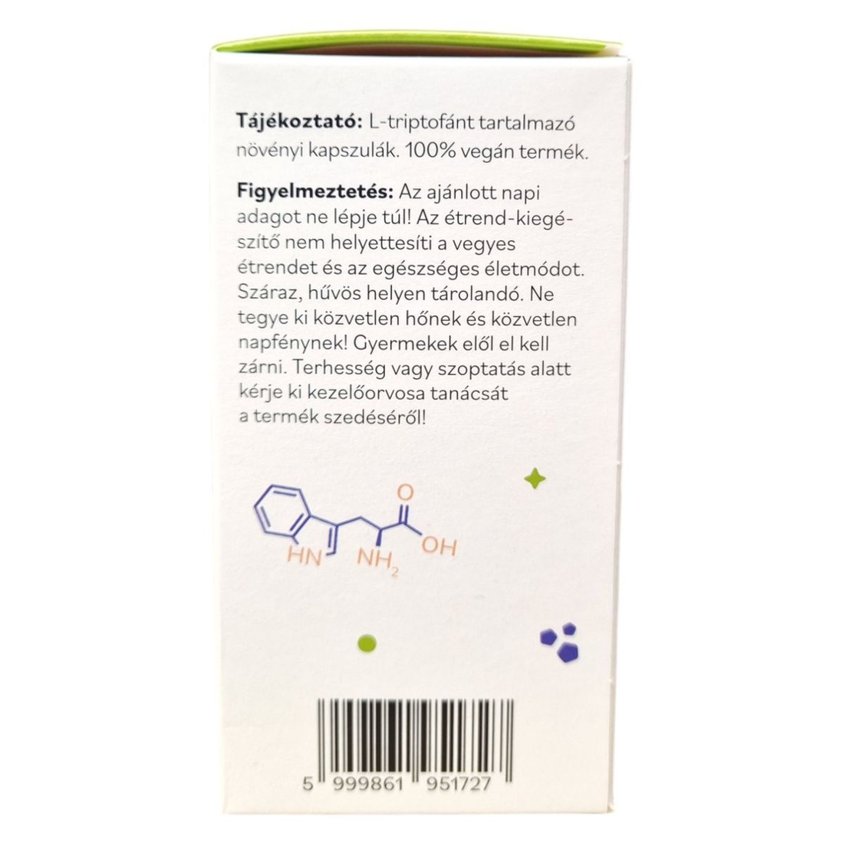 Az L-triptofán (L-tryptophan) esszenciális aminosav, amelyet a szervezet nem képes előállítani, ezért táplálkozással kell biztosítani a bevitelét. Fontos szerepet játszik több biológiailag aktív molekula – például a szerotonin neurotranszmitter és a melatonin hormon – szintézisében. Ezek az anyagok kapcsolatba hozhatók az idegrendszer működésével, a hangulati folyamatokkal és az alvás-ébrenlét ciklus szabályozásával. A triptofán részt vehet továbbá a niacin (B3-vitamin) szintézisében is. Étrend-kiegészítőként gyakran alkalmazzák az idegrendszer élettani működésének támogatására. Megfelelő adagolás mellett általában biztonságosnak tekinthető, azonban bizonyos gyógyszerekkel kölcsönhatásba léphet. Egyéni egészségügyi állapot vagy gyógyszerszedés esetén javasolt szakemberrel konzultálni.