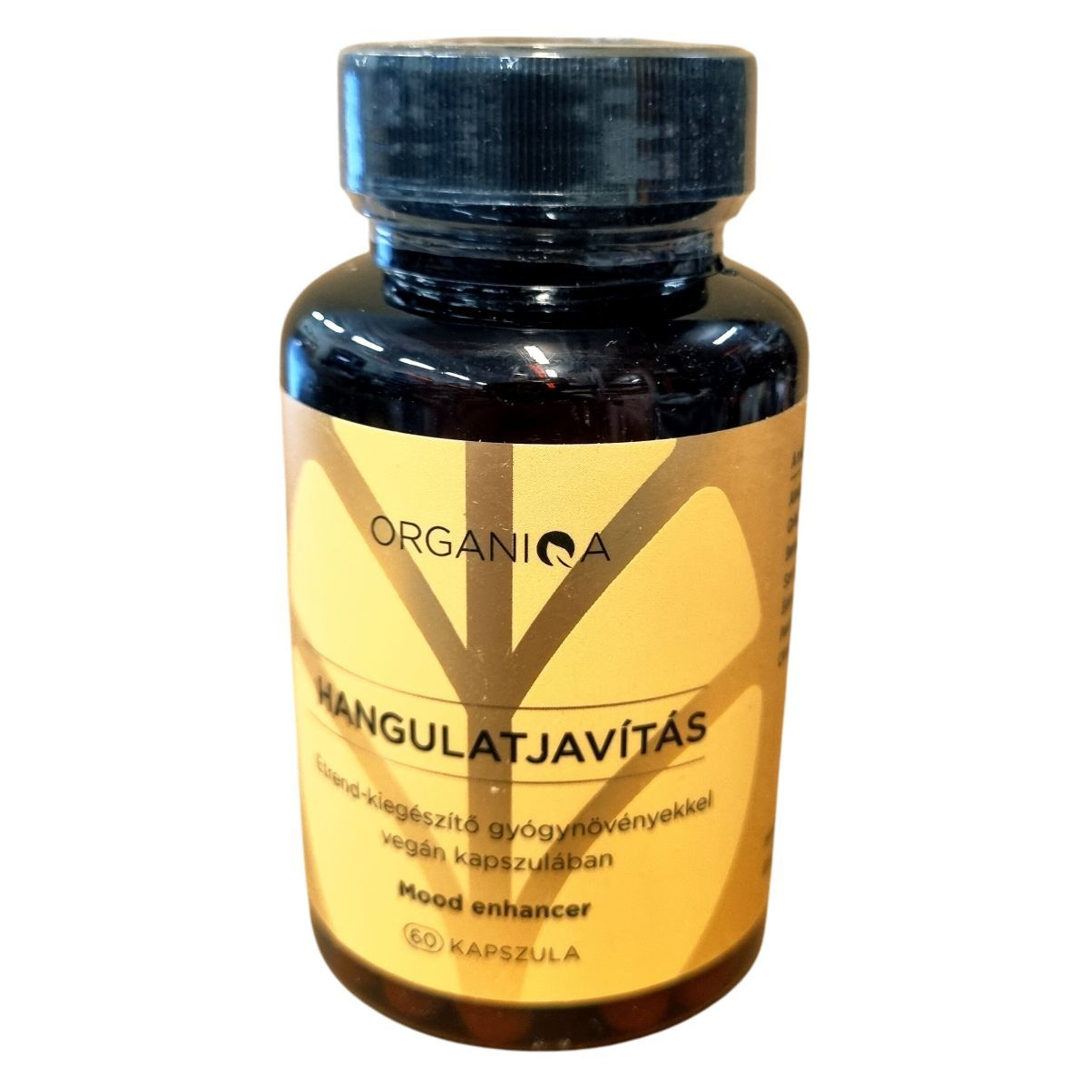 Az Organiqa Hangulatjavítás étrend-kiegészítő gyógynövényekkel készült, és vegán kapszulában érhető el. A termék különféle növényi kivonatokat tartalmaz, mint például aranygyökér, orbáncfű, bengáli bársonybab, szent bazsalikom, édesgyökér, ginzeng és citromfű, amelyek hozzájárulhatnak a hangulat javításához. A termék Indiából származik, és a forgalmazója az Organiqa Team Kft. A termék OGYÉI-notifikált, és fontos, hogy a javasolt napi mennyiséget ne lépjük túl. Tárolása száraz, hűvös helyen ajánlott.