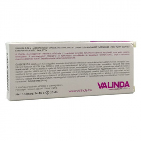 Tudnivalók és figyelmeztetések: a Valinda tablettát nem szedhetik terhes vagy szoptató nők, valamint gyermekek. Az étrend-kiegészítő tablettát gyermekek elől elzárva kell tartani!