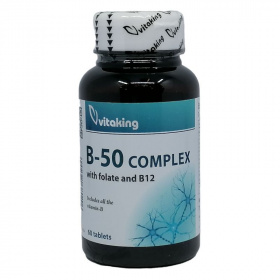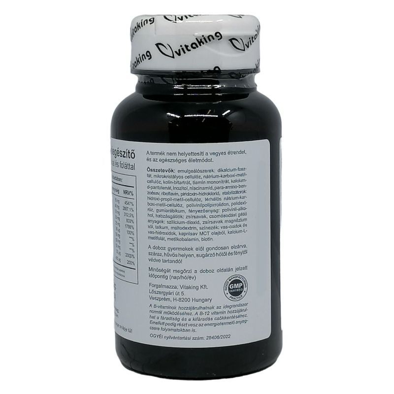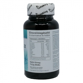 A B-komplex vízoldékony vitaminok csoportját jelenti, amely magában foglalja többek között a B1- (tiamin), B2- (riboflavin), B3- (niacin), B5- (pantoténsav), B6- (piridoxin), B7- (biotin), B9- (folát) és B12-vitamint (kobalamin). Ezek a mikrotápanyagok koenzimként vesznek részt a sejtszintű energiatermelésben, a szénhidrát-, zsír- és fehérje-anyagcserében, valamint az idegrendszer működésében és a vérképzésben. A B-vitaminok egymással szinergiában működnek, ezért kombinált bevitelük támogathatja az anyagcsere-folyamatok összehangolt működését. Vízoldékonyságuk miatt rendszeres pótlásuk indokolt lehet hiányos étrend vagy fokozott szükséglet esetén. A biztonságosság általában kedvező, de egyes komponensek nagy dózisban mellékhatásokat okozhatnak. Egyéni egészségügyi állapot vagy gyógyszerszedés esetén javasolt szakemberrel konzultálni.