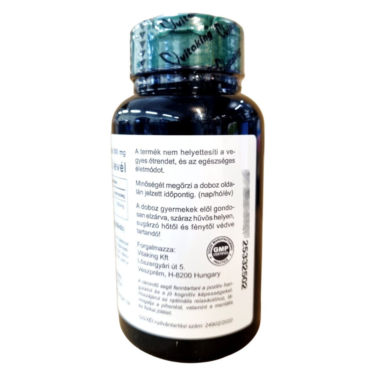 A Vitaking Lemon Balm egy természetes gyógynövény alapú étrend-kiegészítő, amely 60 kapszulát tartalmaz. A fő összetevője a citromfű levél, amely segíthet fenntartani a pozitív hangulatot és a kognitív képességeket. A termék GMP minősítéssel rendelkezik, és az OGYÉI engedélyezte. A citromfű hozzájárulhat az optimális relaxációhoz, a mentális és fizikai jóléthez, valamint a mindennapi jóléthez. A termék használata során fontos, hogy ne lépjük túl a napi ajánlott mennyiséget, és tartsuk be a tárolási előírásokat.