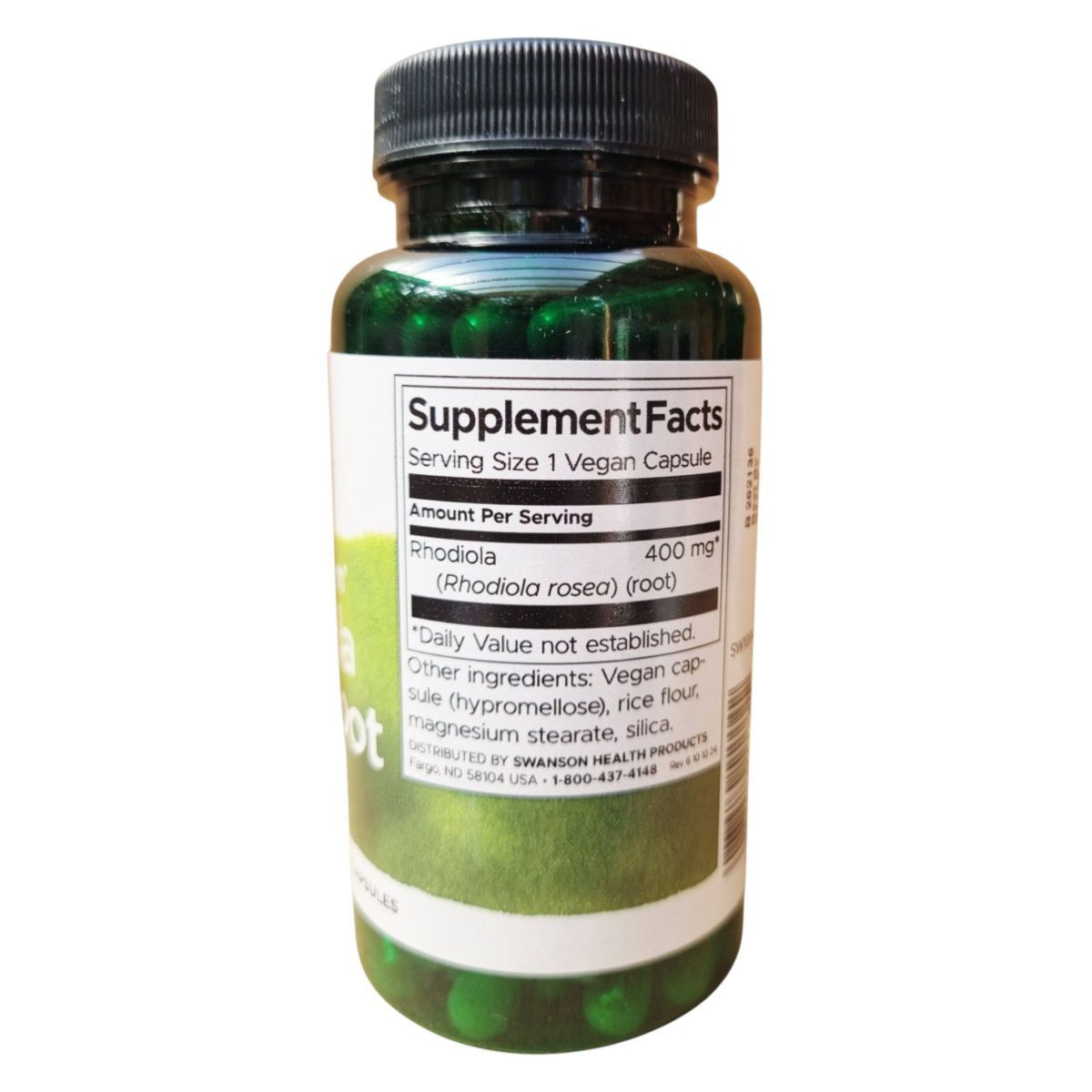 A SWANSON® Full Spectrum® Rhodiola Rosea Root egy 100 vegán kapszulát tartalmazó étrend-kiegészítő, amely 400 mg Rhodiola Rosea gyökér kivonatot tartalmaz kapszulánként. A termék célja, hogy támogassa a stressz kezelését és a mentális, valamint fizikai teljesítményt. Az összetevők között megtalálható a hypromellose alapú vegán kapszula, rizsliszt, magnézium-sztearát és szilícium-dioxid. A termék vegán étrendbe illeszthető, és a napi ajánlott mennyiség 1 kapszula. Fontos, hogy a termék nem helyettesíti a vegyes étrendet és az egészséges életmódot, és gyermekek elől elzárva tartandó. A tárolás során ügyelni kell arra, hogy száraz, hűvös helyen legyen elhelyezve.