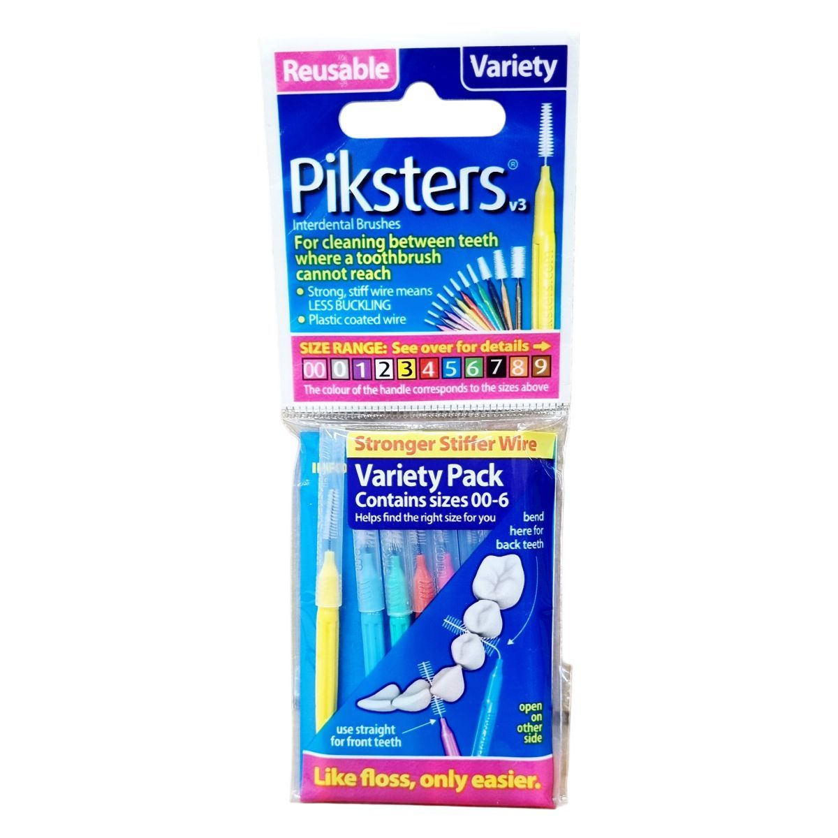 A Piksters fogköztisztító kefék különféle méretekben (00-9) elérhetők, a fogantyú színe a méretnek megfelelően változik. Erős és merev drótot használnak, hogy csökkentsék a görbülést használat közben. A kefék alkalmasak a plakk és ételmaradék eltávolítására a fogak közötti területeken, különösen ott, ahol a fogkefe nem ér el. Használhatók egy kézzel és alkalmasak a hátsó fogakhoz a hajlítási funkcióval, míg az elülső fogakhoz egyenesen alkalmazhatók. A termék megkönnyíti a fogközök tisztítását, ami segíthet csökkenteni az ínybetegségek kockázatát és a kellemetlen leheletet. A gyártás Kínában történik, a termék dizájnját Ausztráliában fejlesztették ki, és nemzetközi forgalmazásban érhető el.