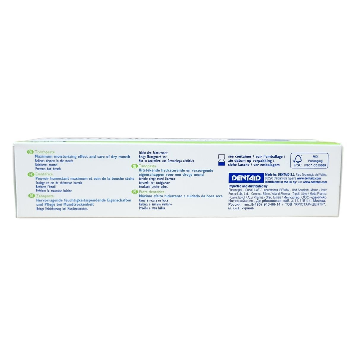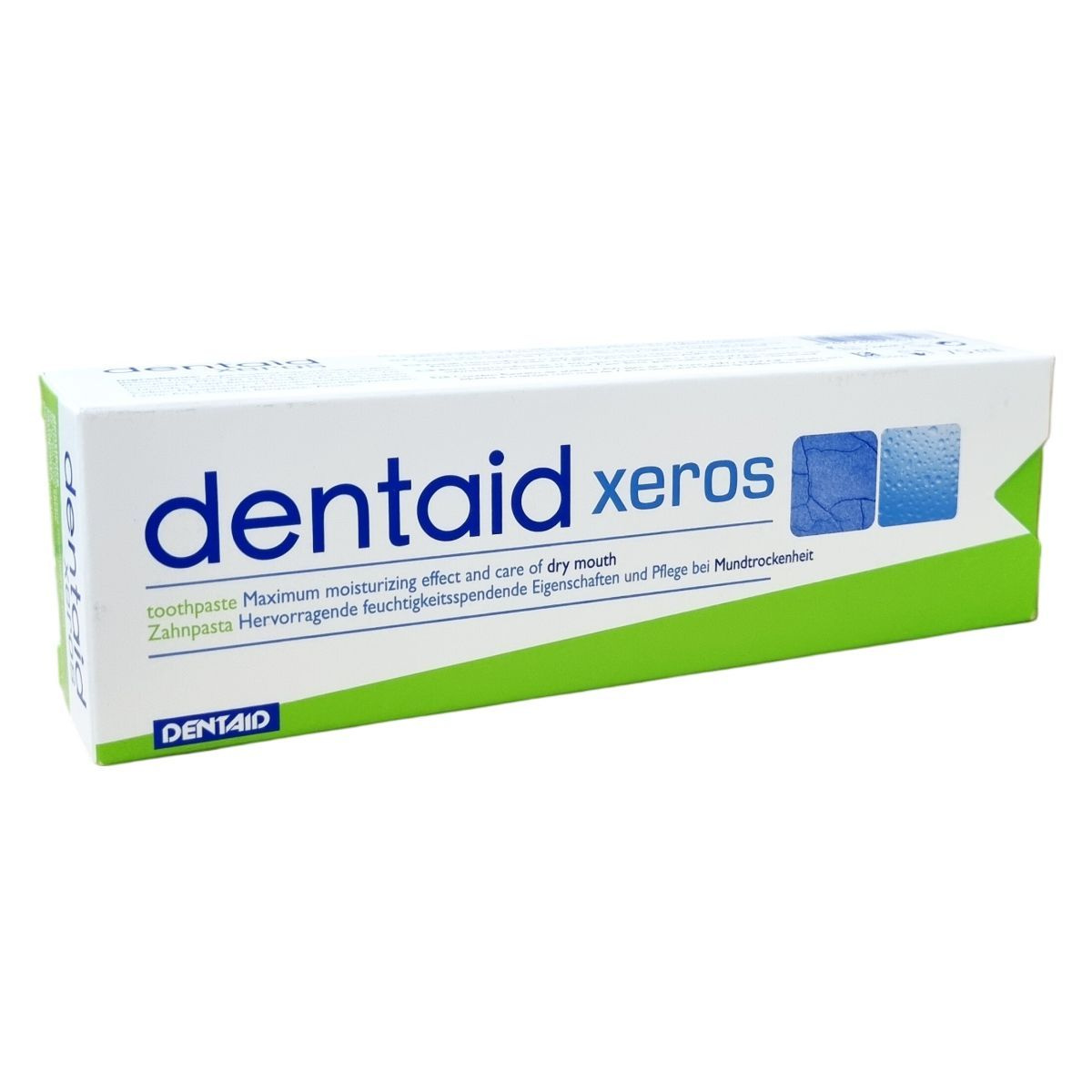A Dentaid Xeros fogkrém különösen szájszárazságban szenvedők napi szájhigiénéjéhez készült. Hidratáló képessége kiváló, enyhíti a szájszárazság kellemetlen tüneteit, miközben erősíti a fogzománcot és megakadályozza a rossz lehelet kialakulását. A termék nem tartalmaz nátrium-lauril-szulfátot, ezáltal kíméletes a fogakhoz és a száj nyálkahártyájához. Széles körben elérhető Európában, valamint több más országban is forgalmazzák szakértői boltokban és gyógyszertárakban. A termék 75 ml kiszerelésű tubusban érhető el. A család további tagjai között szájspray, szájvíz és gél is megtalálható a Xeros termékcsaládban.