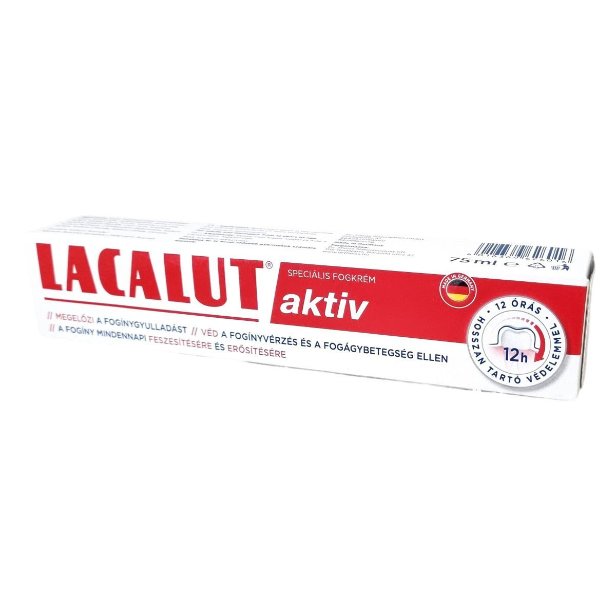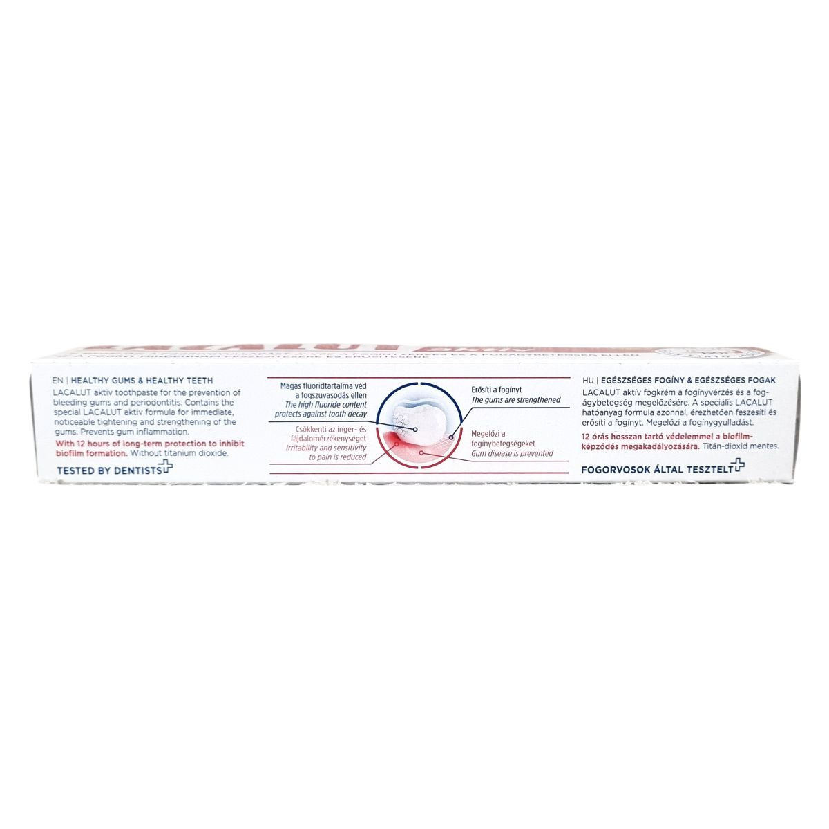 A LACALUT aktiv fogkrém hatékonyan megelőzi a fogínygyulladást és a fogágybetegséget, miközben erősíti és feszesíti a fogínyt, 12 órás hosszan tartó védelmet nyújtva.