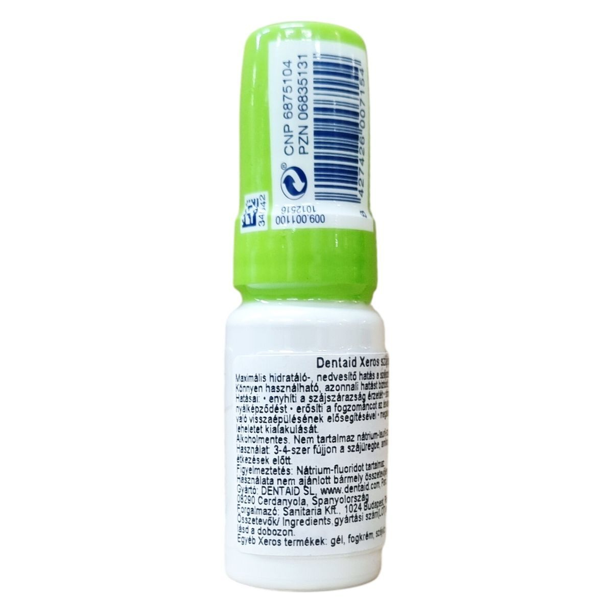 Oral spray. Spray buccal. Mundspray. Mondspay. Spray bucal. Alkoholmentes készítmény, amely nem tartalmaz nátrium-lauril-szulfátot. Könnyen használható, azonnali hatást biztosít. Hatásai: enyhíti a szájszárazság érzetét, stimulálja a természetes nyálképződést, erősíti a fogzománcot az ásványi anyagok zománcba való visszaépülésének elősegítésével, valamint megakadályozza a rossz lehelet kialakulását. Gyártó: 08290 Cerdanyola, Spanyolország. Forgalmazó: 1024 Budapest, Rómer Flóris u. 34. Összetevők/Ingredients, gyártási szám (LOT) és lejárati idő (EXP: hó, év) lásd a dobozon. Egyéb Xeros termékek: gél, fogkrém, szájvíz.