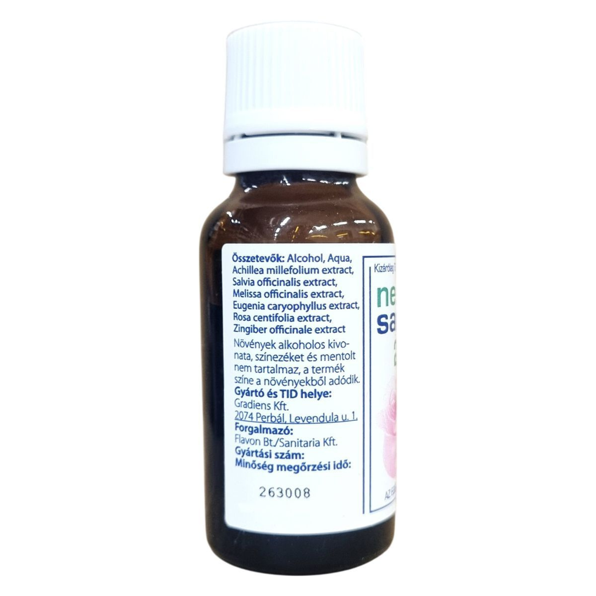 A neo sanilind 2000 teljesen természetes anyagokból készült, Magyarországon gyártott fogíny- és szájápoló oldat. A termék gyógynövények alkoholos kivonatát tartalmazza, amelyek gyulladáscsökkentő és összehúzó hatásukkal ápolják az érzékeny fogínyt. Használatával biztosítható a szájhigiénia és fenntartható a friss lehelet. A készítmény nem tartalmaz színezéket és mentolt, a termék színe a benne lévő növényi összetevőkből ered. A termék 18 ml kiszerelésű, és kizárólag természetes alapanyagokból készült. Felhívjuk a figyelmet, hogy a termék alkoholt tartalmaz, gyermekektől elzárva kell tartani, és nem ajánlott azok számára, akik érzékenyek valamely növényi összetevőre.