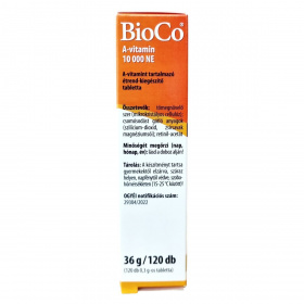 A BioCo A-vitamin készítmény napi 1 tabletta fogyasztásával magas dózisban biztosíthat A-vitamin pótlást, amely hozzájárulhat a normál látás, bőr és nyálkahártyák állapotának fenntartásához, valamint az immunrendszer és a sejtek működéséhez.