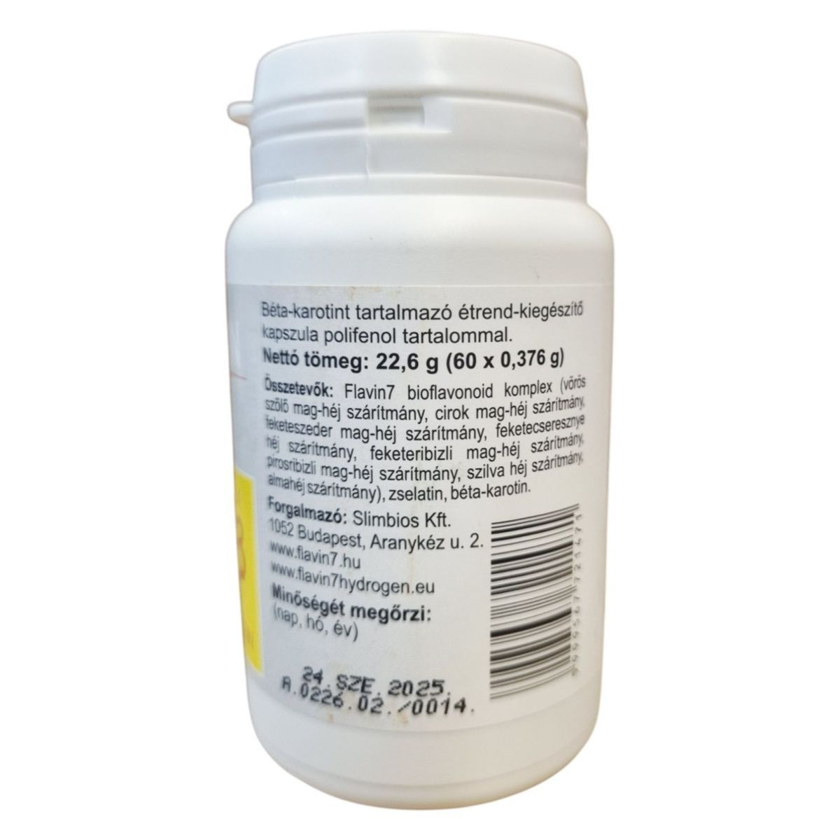 A FLAVITAMIN FLAVIN7 BIOFLAVONOID kapszula béta-karotint és polifenolokat tartalmazhat, amelyek hozzájárulhatnak a látás és a bőr normál állapotának fenntartásához.