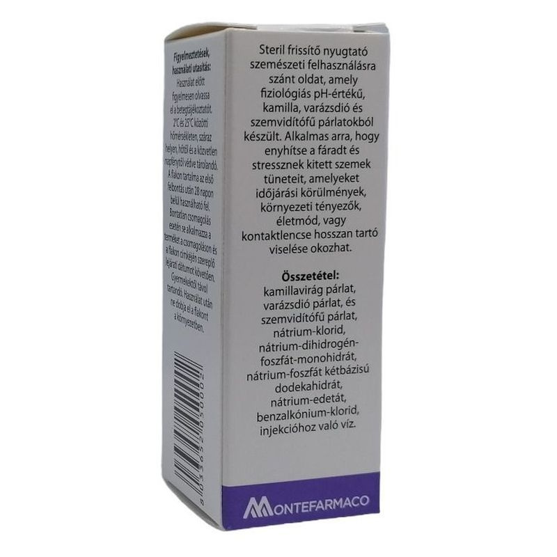 Ezek a gyógynövények ismerten nyugtató hatással vannak, és fáradt, kimerült szemre javasoltak. A csepp frissé teszi a szemet kialvatlan éjszaka és a képernyő előtt töltött hosszas órák után, illetve ellensúlyozza a füstös helyiségek, vagy a hosszabb ideig tartó napozás hatásait. pH értéke, izotóniás hatása és ozmolaritása tökéletesen összhangban van a szemszövettel és a könnyfolyadékkal.