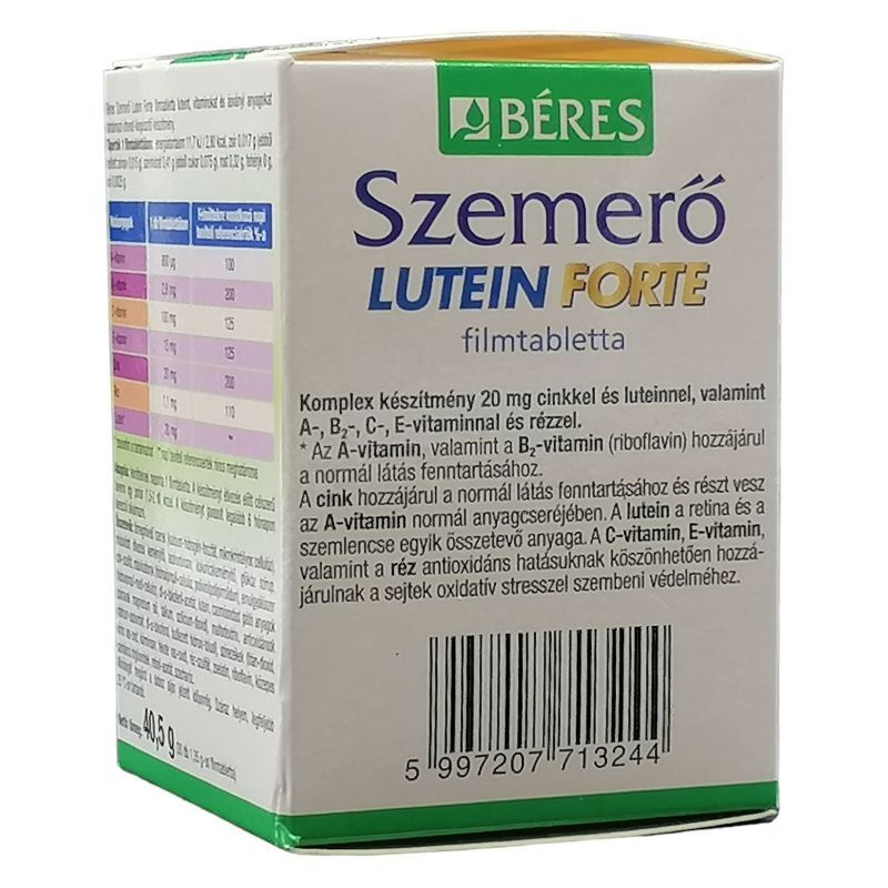 A 30 db-os komplex készítmény 20 mg cinkkel és luteinnel, valamint A-, B2-, C- és E-vitaminnal és rézzel. Az A-vitamin és a B2-vitamin hozzájárul a normál látás fenntartásához. A cink részt vesz az A-vitamin normál anyagcseréjében. A lutein a retina és a szemlencse egyik összetevője. A C- és E-vitamin, valamint a réz antioxidáns hatásuk révén hozzájárulnak a sejtek oxidatív stresszel szembeni védelméhez. Alkalmazása javasolt a szem egészségének megőrzésére, a normál látás fenntartására, valamint rossz megvilágítási viszonyok között dolgozóknak és gyakori képernyőhasználat esetén.