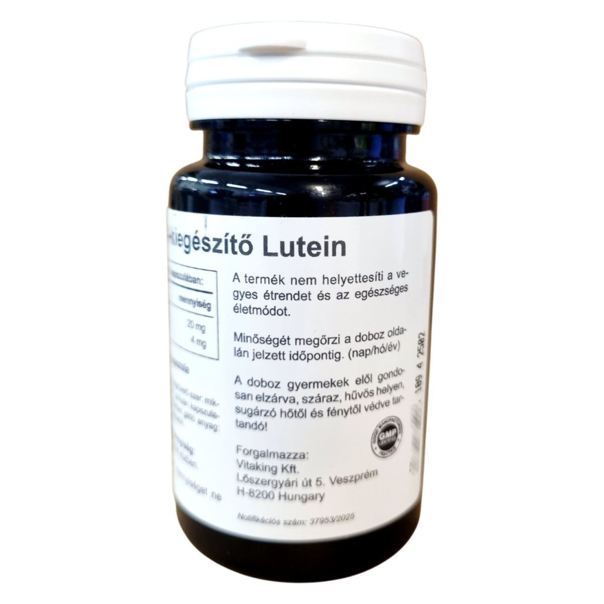 A lutein egy zsírban oldódó karotinoid típusú bioaktív fitovegyület, amely természetes módon fordul elő zöld leveles növényekben és bizonyos zöldségekben. A retina makulájában (sárgafolt) halmozódik fel, ahol a zeaxantinnal együtt a makulapigment részét képezi. Fényelnyelő tulajdonsága révén hozzájárulhat a nagy energiájú kék fény szűréséhez, valamint antioxidáns mechanizmuson keresztül támogathatja a sejtek oxidatív stresszel szembeni védelmét. Elsősorban a szem egészségének és a látás fiziológiás működésének támogatására alkalmazzák. Hatása dózis- és egyéni tápanyagellátottság-függő lehet. Megfelelő mennyiségben általában biztonságosan alkalmazható. Egyéni egészségügyi állapot vagy gyógyszerszedés esetén javasolt szakemberrel konzultálni.