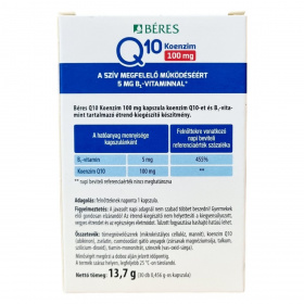A Béres Q10 Koenzim 100 mg kapszula KANEKA Q10-et tartalmaz, amely fermentációval (élesztős erjesztéssel) előállított, gyógyszerkönyvi minőségű, all-transz formájú hatóanyag. A koenzim Q10 egy vitaminszerű anyag, amely a szervezet minden élő sejtjében jelen van; koncentrációja a szívben, a májban, a vesében és az izomszövetben a legmagasabb. Az életkor előrehaladtával a szervezet Q10 termelése fokozatosan csökken, ezért ezen időszakban javasolt fokozottan ügyelni a megfelelő bevitelre. A B1-vitamin hozzájárul a szív megfelelő működéséhez.