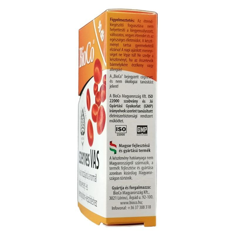 A BioCo szerves vas kizárólag szerves kötésű glükonát formában tartalmazza a normál vörösvérsejt- és hemoglobin-képződéshez szükséges vasat jelentős, tablettánként 14 mg-os hatóanyag-mennyiségben. A termék nem tartalmaz szervetlen vas vegyületeket (pl. vas-szulfát).